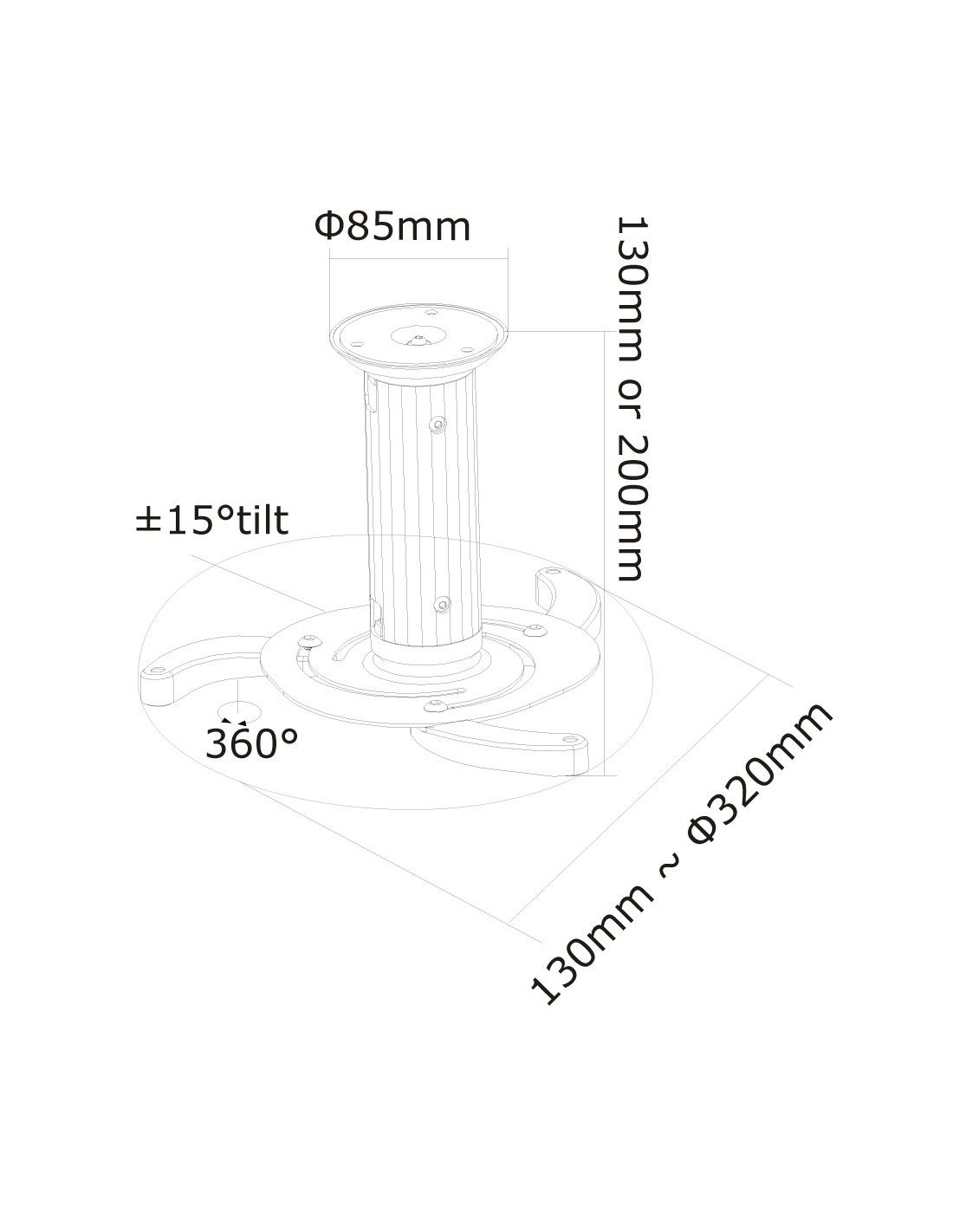 Il supporto è facilmente regolabile in altezza, consente inoltre l’inclinazione in senso verticale e la rotazione. Con questo supporto si può facilmente determinare la posizione ideale. I cavi sono tenuti fuori dalla vista attraverso la predisposizione di passaggio all’interno della colonna.