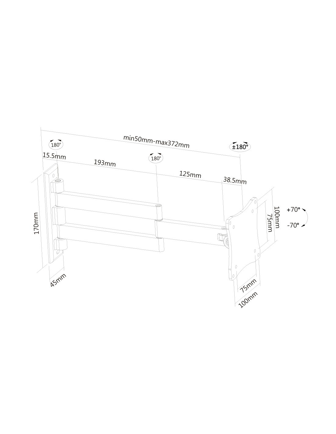 Il supporto FPMA-W830 ha tre punti di articolazione ed è adatto a schermi fino a 27" (69 cm) con una capacità massima di trasporto di 12 kg. Questo prodotto è adatto per schermi con fori VESA modello 75x75, 100x100 mm. Per una diversa (più grande) foratura, si può combinare con una delle nostre piastre di adattamento VESA.