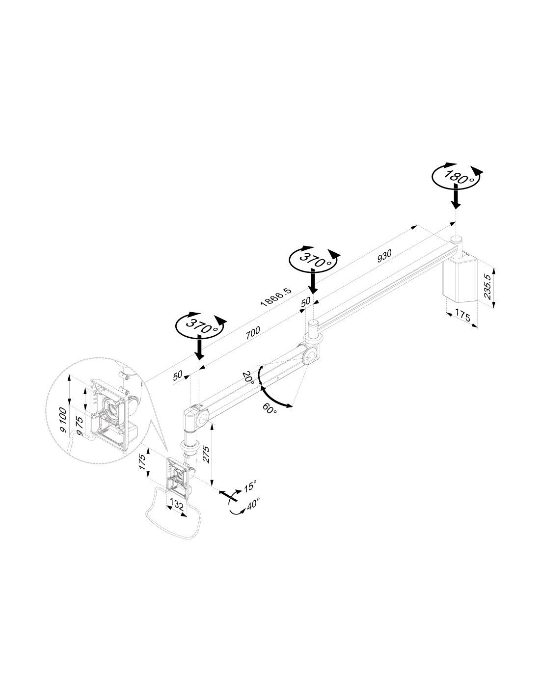 Il braccio è facile da regolare in altezza e profondità. È inoltre possibile inclinare lo schermo in senso verticale, orizzontale e farlo ruotare; questo crea la posizione ergonomica di lavoro ideale riducendo il rischio di mal di schiena e al collo. I cavi sono tenuti fuori dalla vista attraverso la predisposizione di passaggio all’interno del braccio.