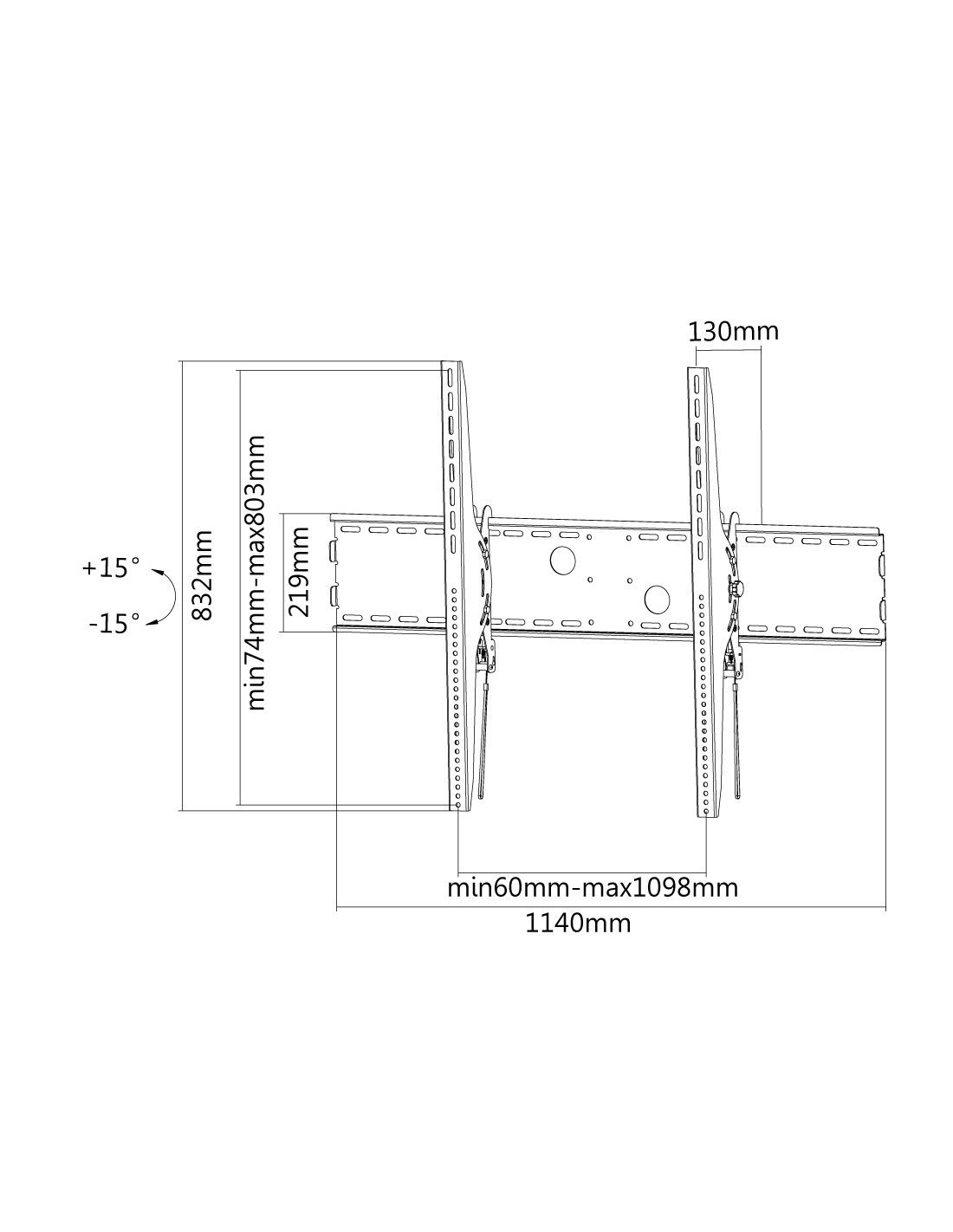 Utilizzate un montaggio a parete per sfruttare pienamente le capacità del vostro schermo. Il montaggio a parete è facile da inclinare. I LFD-W2000, adatto a schermi fino a 100" (254 cm) con capacità massima di trasporto di 100 kg può essere montato su schermi con fori VESA fino a 1000x800.