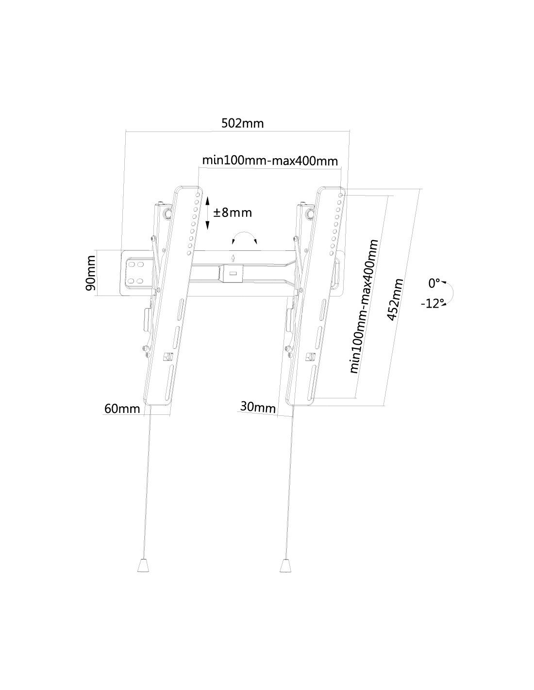 Questo supporto di soli 30 millimetri di profondità renderà la vostra TV LED un tutt'uno con la parete. La distanza può essere aumentata fino a 50 mm utilizzando le boccole in dotazione.