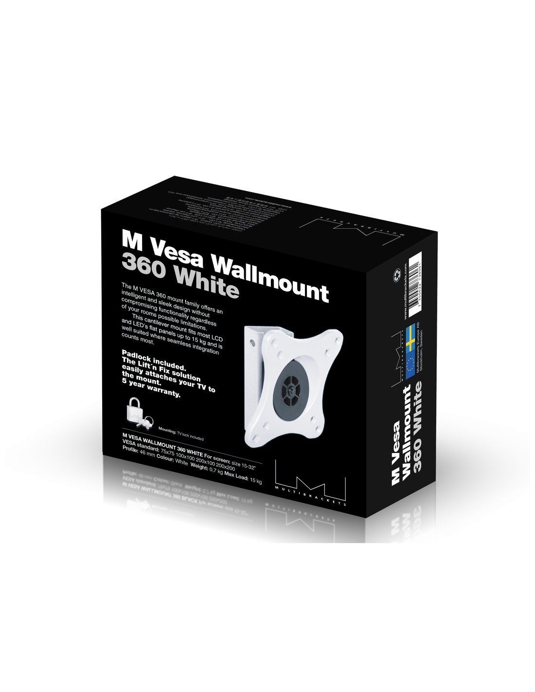Multibrackets 6061. Peso massimo (capacità): 15 kg, Capienza minima dimensioni dello schermo: 38,1 cm (15"), Capienza massima dimensioni dello schermo: 81,3 cm (32"), Compatibilità interfaccia di montaggio (min): 75 x 75 mm, Compatibilità interfaccia di montaggio (max): 200 x 200 mm. Distanza dalla parete (min): 5 cm. Colore del prodotto: Bianco