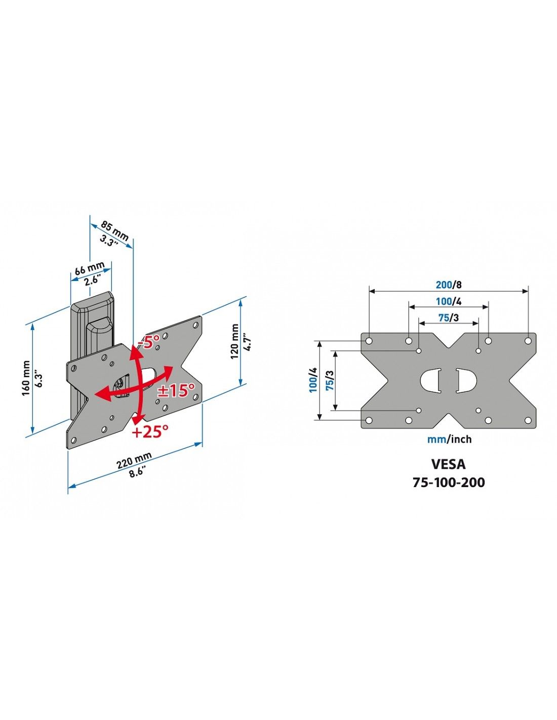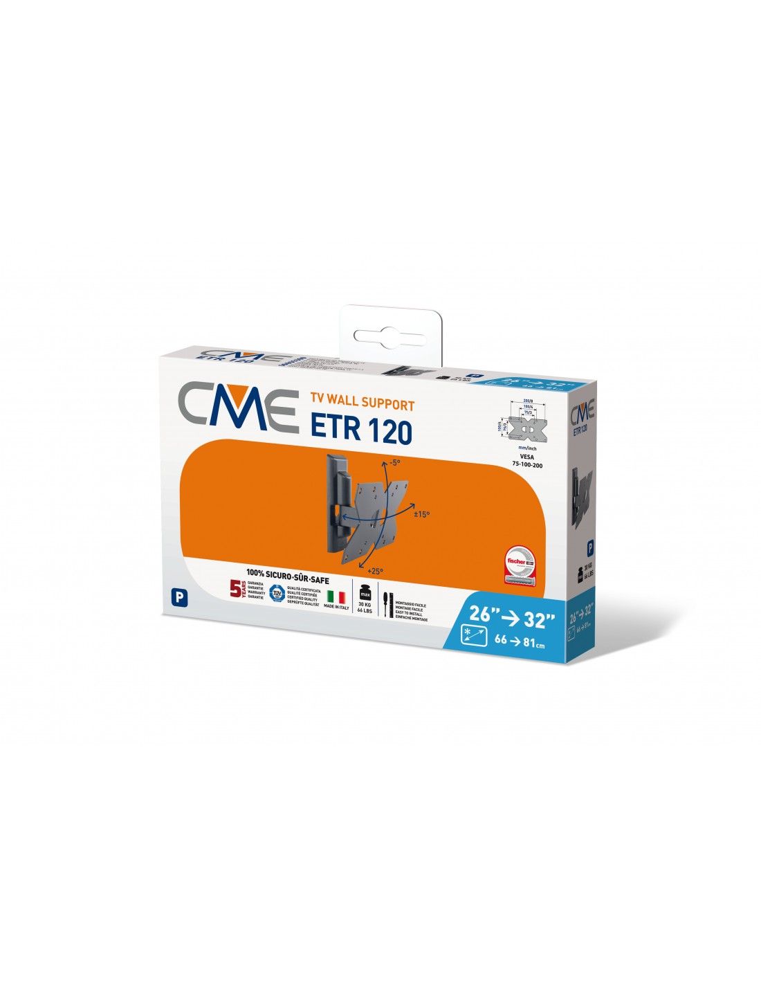 ETR120 è un supporto adatto a tutte le TV con foratura VESA 75 - 100 - 200x100 mm, consente di inclinare lo schermo verticalmente ed orizzontalmente.