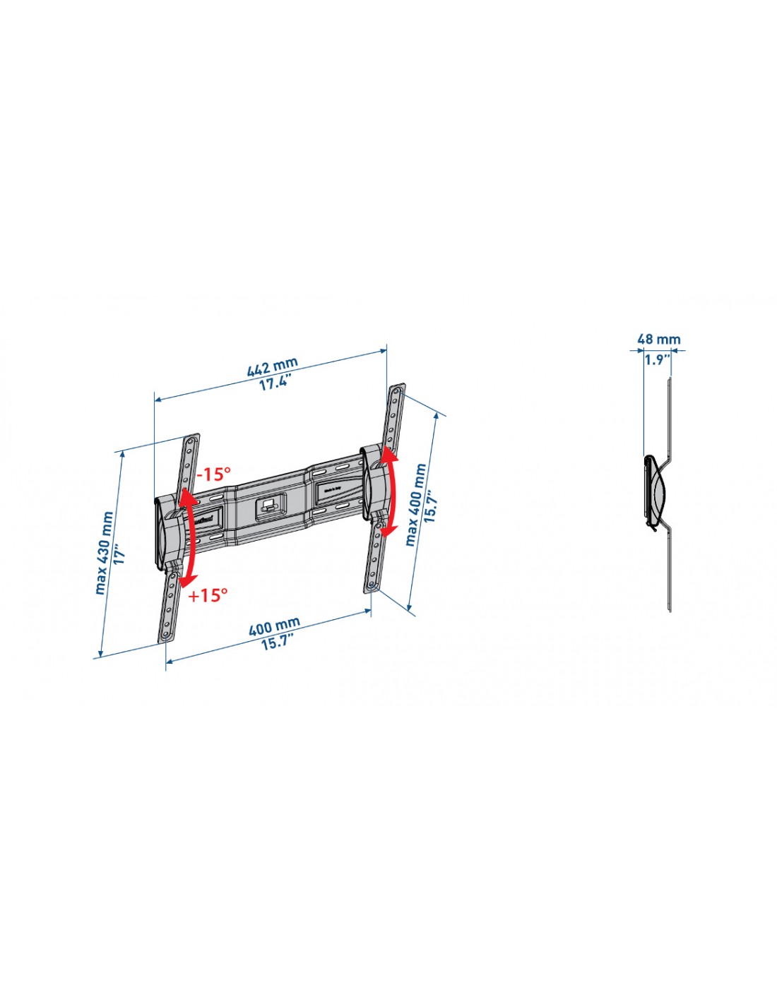 ET400 è un supporto adatto a tutte le TV con foratura VESA 200 - 300 x 200 - 300 - 400 - 400 x 200 - 400 x 300 mm, consente di inclinare lo schermo verticalmente.