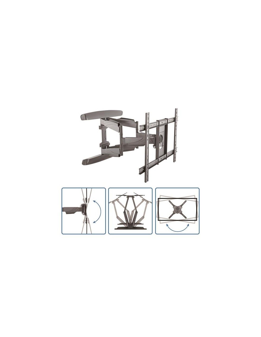 Il supporto TV da parete completamente articolabile è provvisto di una staffa doppia in grado di estendersi fino a 517 mm dal muro, una caratteristica che assicura la più ampia possibilità di movimento e permette di orientare lo schermo secondo diverse angolature e in varie posizioni. La staffa doppia si può ripiegare e aderire così alla parete, con un basso profilo che consente di collocare il display a una distanza di soli 57 mm dal muro.