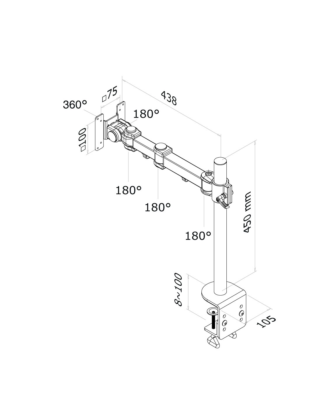 Utilizzate un braccio porta monitor per sfruttare pienamente le capacità del vostro schermo. Il braccio è facile da regolare in altezza e profondità. È inoltre possibile inclinare lo schermo in senso verticale, orizzontale e farlo ruotare; questo crea la posizione ergonomica di lavoro ideale riducendo il rischio di mal di schiena e al collo. I cavi possono essere collocati sulla parte inferiore del braccio e su quella verticale del palo.