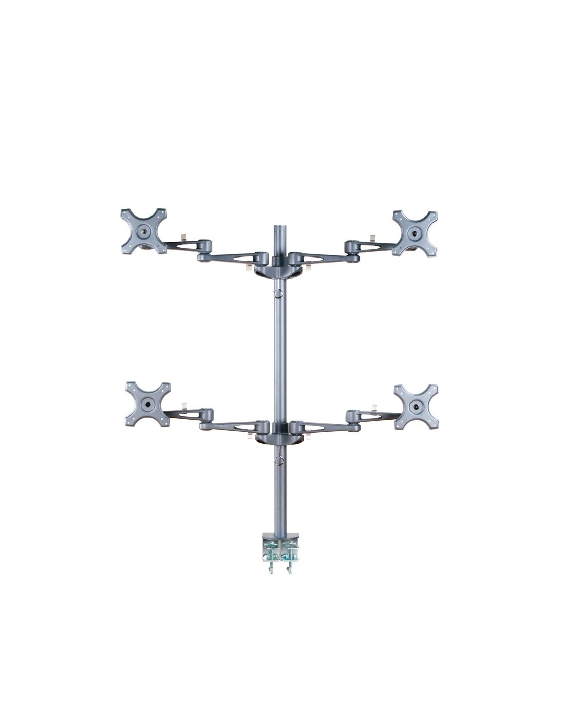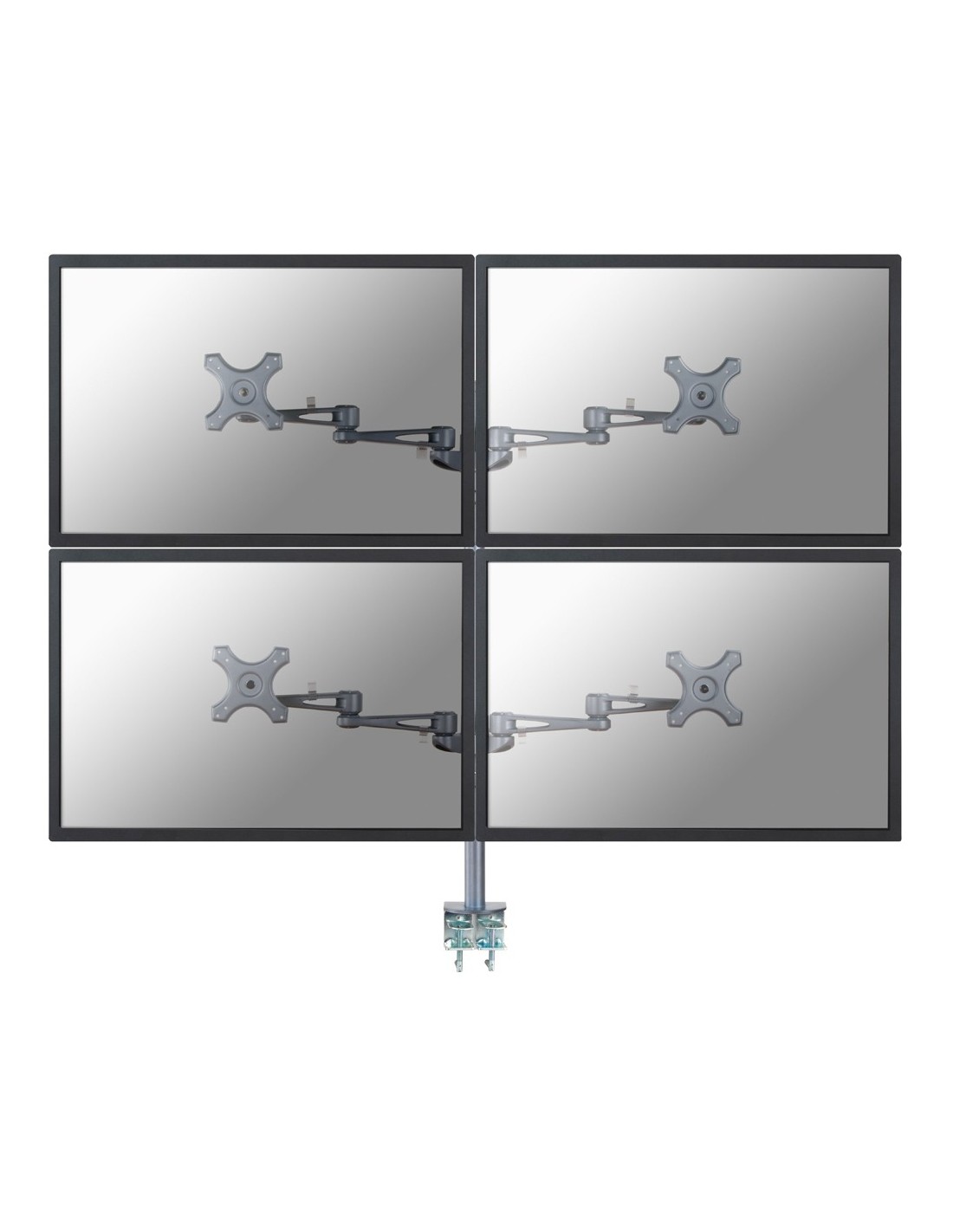 Questo braccio porta monitor NewStar, modello FPMA-D935D4 consente di collegare quattro schermi LCD/LED/TFT su di una scrivania con la modalità di fissaggio su piano attraverso un morsetto.