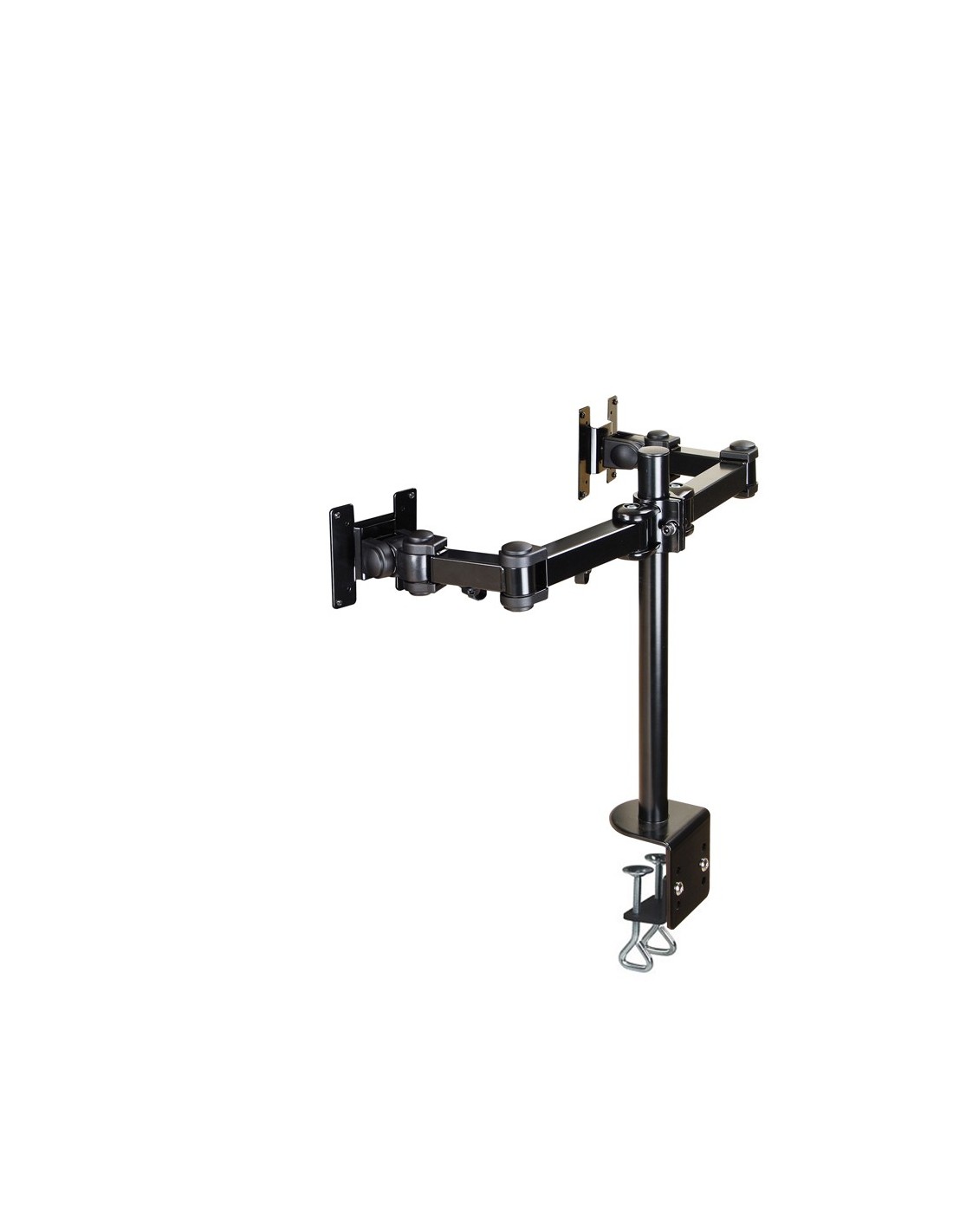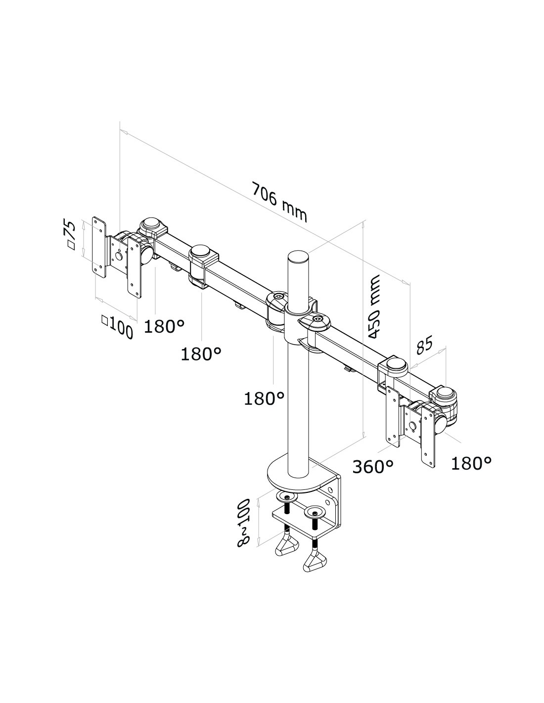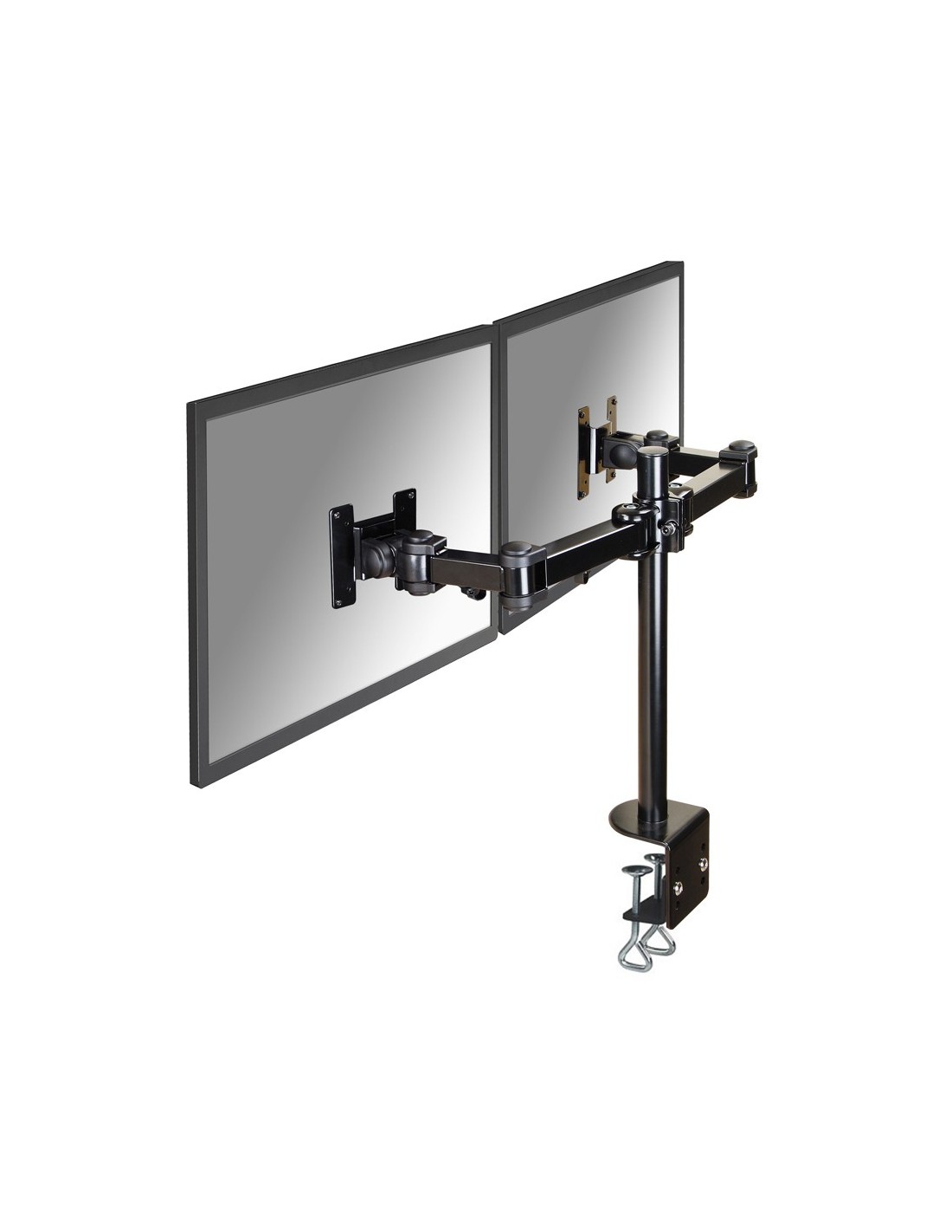 Questo braccio porta monitor NewStar, modello FPMA-D960D consente di collegare due schermi LCD/LED/TFT su di una scrivania con la modalità di fissaggio su piano attraverso un morsetto.