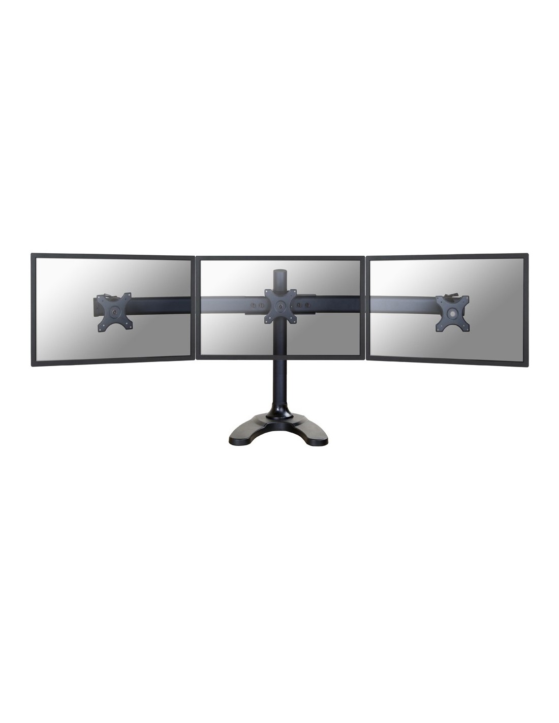 Questo braccio porta monitor NewStar, modello FPMA-D700DD3 consente di collegare tre schermi LCD/LED/TFT su di una scrivania con la modalità di fissaggio su piano attraverso vite centrale o stand.