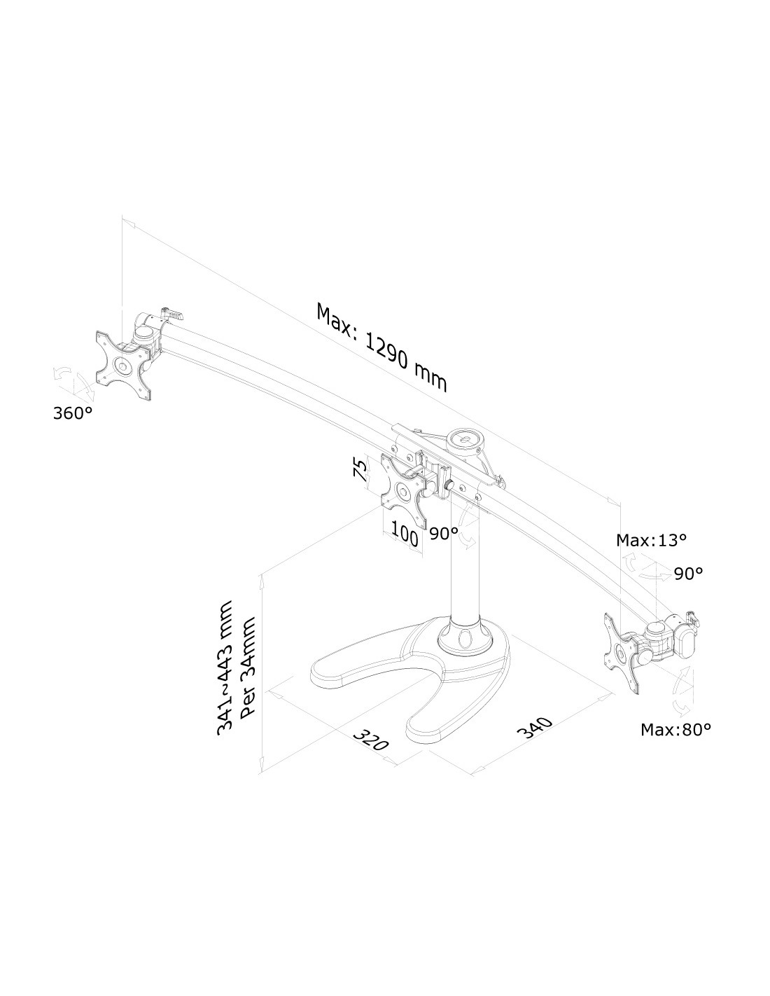 Utilizzate un braccio porta monitor per sfruttare pienamente le capacità del vostro schermo. Il braccio è facile da regolare in altezza. È inoltre possibile inclinare lo schermo in senso verticale, orizzontale e farlo ruotare; questo crea la posizione ergonomica di lavoro ideale riducendo il rischio di mal di schiena e al collo. I cavi possono essere collocati sul lato orizzontale del braccio e attraverso la predisposizione di passaggio all’interno della colonna.