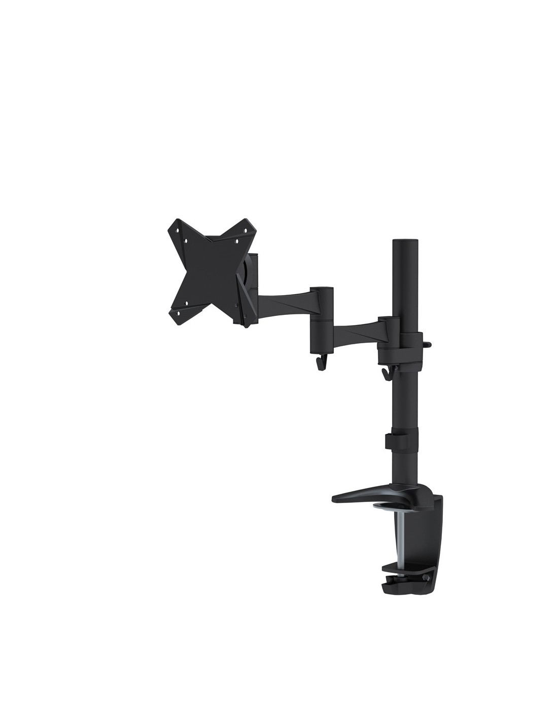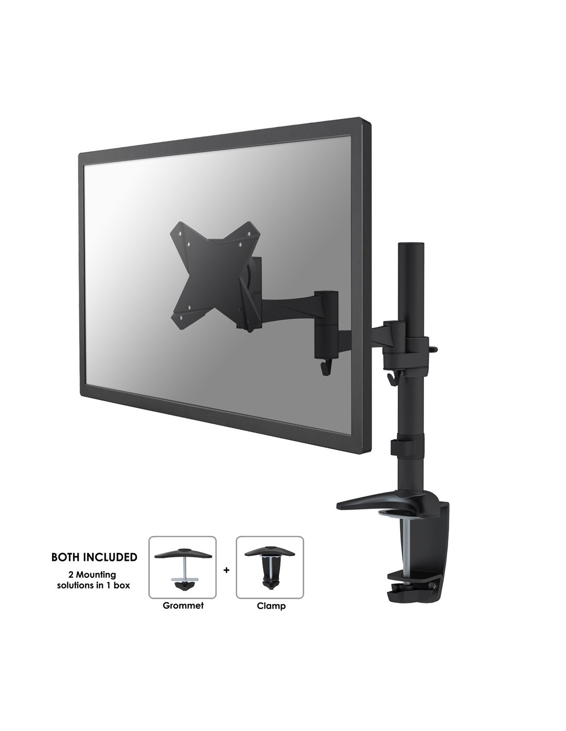 Questo braccio porta monitor NewStar, modello FPMA-D1330BLACK consente di collegare un schermo LCD/LED/TFT su di una scrivania con la modalità di fissaggio su piano attraverso vite centrale o morsetto.