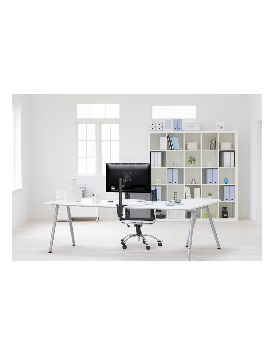 Utilizzate un braccio porta monitor per sfruttare pienamente le capacità del vostro schermo. Il braccio è facile da regolare in altezza e profondità. È inoltre possibile inclinare lo schermo in senso verticale, orizzontale e farlo ruotare; questo crea la posizione ergonomica di lavoro ideale riducendo il rischio di mal di schiena e al collo. I cavi possono essere collocati sul lato inferiore del braccio.