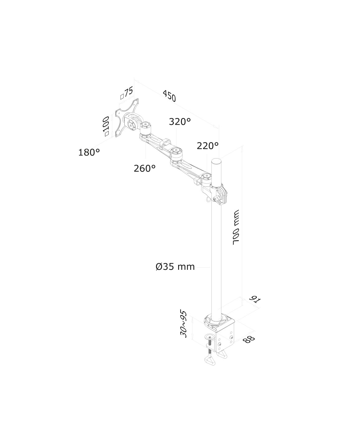 Questo braccio porta monitor NewStar, modello FPMA-D935POLE70 consente di collegare uno schermo LCD/LED/TFT su di una scrivania con la modalità di fissaggio su piano attraverso un morsetto.