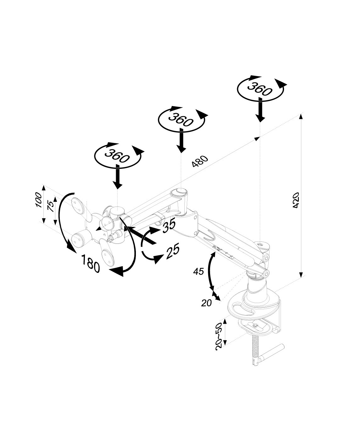 Utilizzate un braccio porta monitor per sfruttare pienamente le capacità del vostro schermo. Il braccio è facile da regolare in altezza e profondità. È inoltre possibile inclinare lo schermo in senso verticale, orizzontale e farlo ruotare; questo crea la posizione ergonomica di lavoro ideale riducendo il rischio di mal di schiena e al collo. I cavi possono essere collocati sulla parte inferiore del braccio.