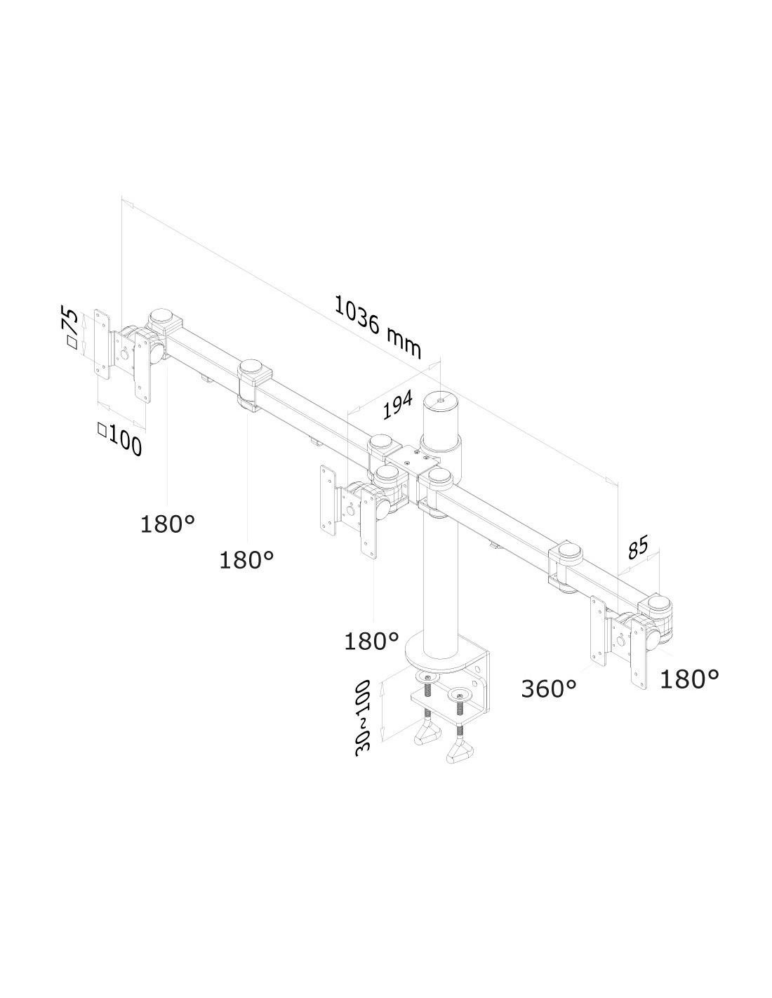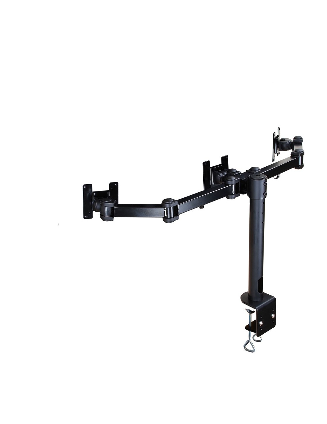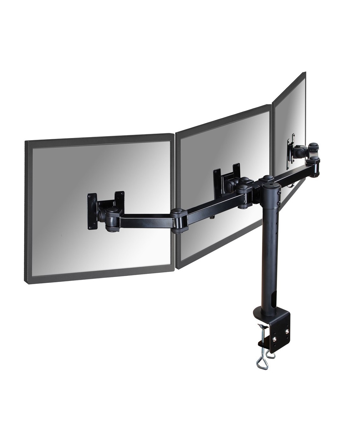 Questo braccio porta monitor NewStar, modello FPMA-D960D3 consente di collegare tre schermi LCD/LED/TFT su di una scrivania con la modalità di fissaggio su piano attraverso un morsetto.