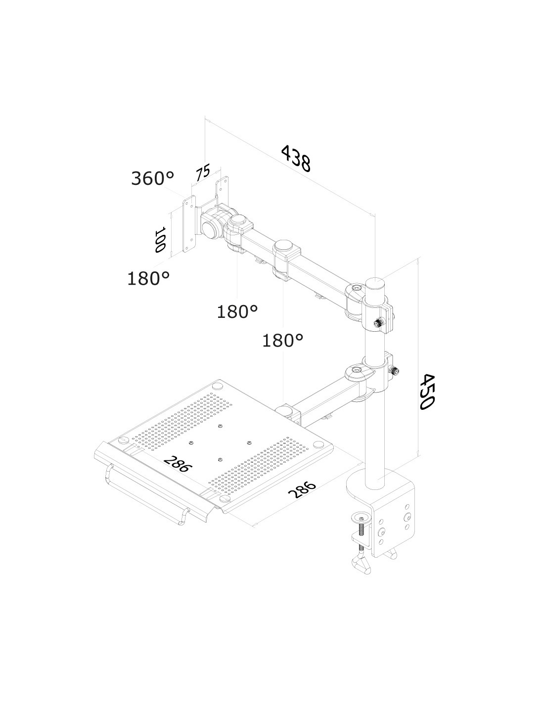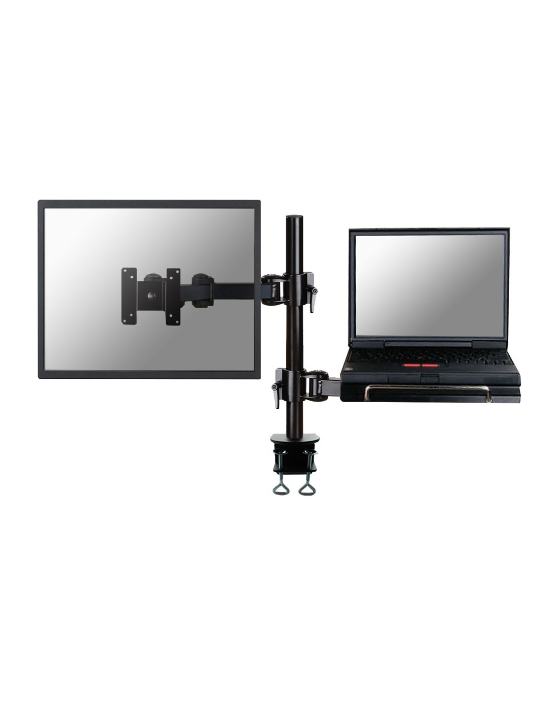Questo braccio porta monitor NewStar, modello FPMA-D960NOTEBOOK consente di collegare uno schermo LCD/LED/TFT su di una scrivania y di collegare un notebook con la modalità di fissaggio su piano attraverso un morsetto.
