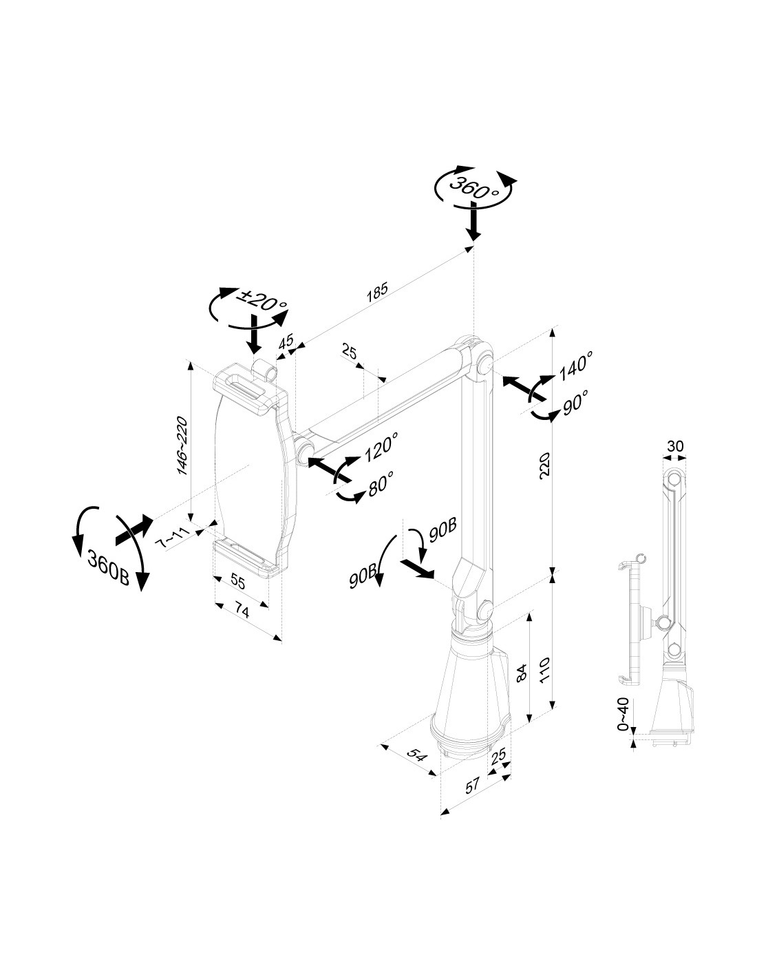 | Inclinazione | 0 - 180° |