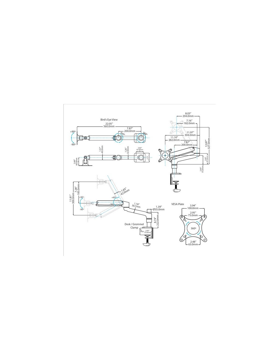 Il braccio per monitor per montaggio sulla scrivania presenta un cilindro con molla a gas per alzare o abbassare facilmente il display e offre un ampio raggio di movimento su diversi assi. Per la visualizzazione di pagine di maggiore lunghezza o di blocchi di codici senza dover scorrere lo schermo, il braccio per LCD supporta inoltre la rotazione del display da orizzontale a verticale.
