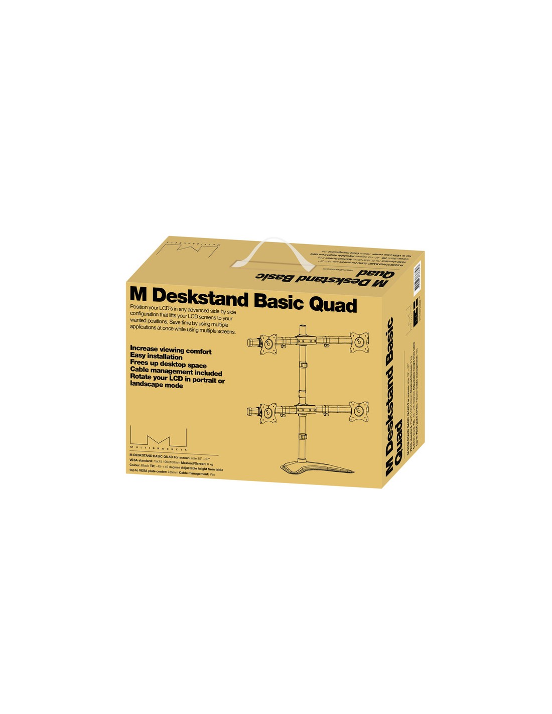 Multibrackets 7 350 073 733 347. Montaggio: Libera installazione, Adatto per: Monitor per computer, Peso massimo (capacità): 10 kg, Capienza minima dimensioni dello schermo: 38,1 cm (15"), Capienza massima dimensioni dello schermo: 68,6 cm (27"), Compatibilità interfaccia di montaggio (min): 75 x 75 mm, Compatibilità interfaccia di montaggio (max): 100 x 100 mm. Regolazione altezza, Angolo di rotazione: -45 - 45°, Inclinazione: -45 - 45°. Colore del prodotto: Nero