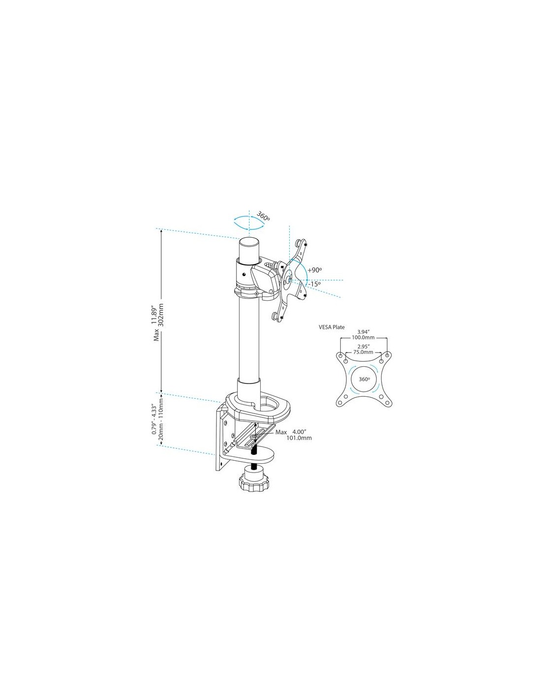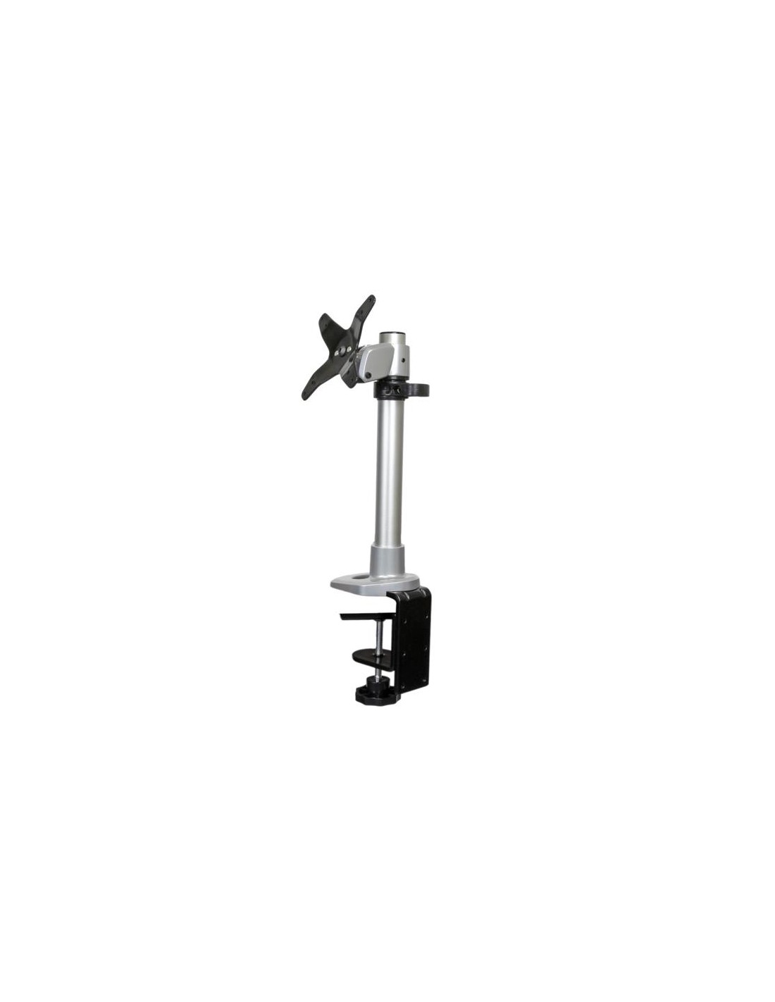 Supporto per Monitor con altezza regolabile - Braccio porta Monitor LCD LED con gancio per gestione cavi, Morsa, 14 kg, 30,5 cm, 76,2 cm, 100 x 100 mm, Nero, Argento