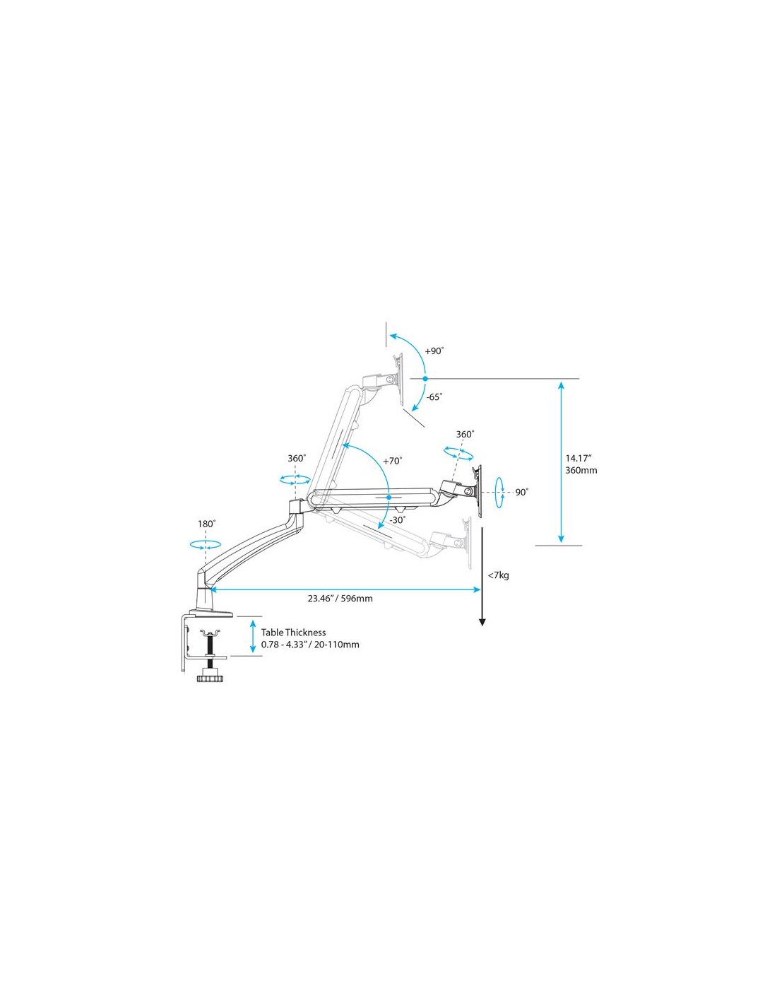 Questo versatile braccio per monitor consente la regolazione di prolunga, inclinazione, disposizione orizzontale e rotazione del display con una gamma di movimenti completa su più assi, presenta inoltre la regolazione dell'altezza con molla per un agevole posizionamento. Per la visualizzazione di pagine di maggiore lunghezza o di blocchi di codici senza dover scorrere lo schermo, il braccio per LCD supporta inoltre la rotazione del display da orizzontale a verticale.