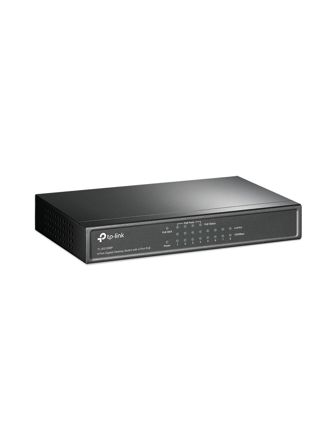 TP-LINK TL-SG1008P. Tipo di porte RJ-45: Gigabit Ethernet (10/100/1000), Quantità di porte RJ-45: 8. Full duplex. Dimensioni tavola MAC: 8000 voci, Capacità di commutazione: 16 Gbit/s. Standard di rete: IEEE 802.3,IEEE 802.3ab,IEEE 802.3af,IEEE 802.3u,IEEE 802.3x. Connettore di alimentazione: Jack DC-ingresso. Supporto Power over Ethernet (PoE)