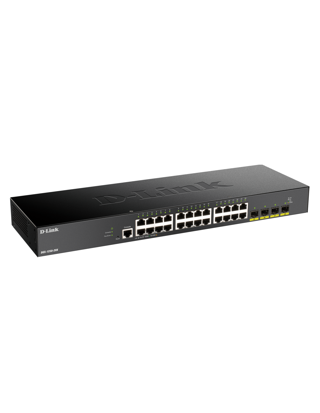 D-Link DGS-1250-28X. Tipo interruttore: Gestito, Livello del commutatore: L3. Tipo di porte RJ-45: Gigabit Ethernet (10/100/1000), Quantità di porte RJ-45: 24, Console port: RJ-45. Full duplex. Dimensioni tavola MAC: 16000 voci, Capacità di commutazione: 128 Gbit/s. Standard di rete: IEEE 802.1D,IEEE 802.1Q,IEEE 802.1p,IEEE 802.1s,IEEE 802.1w,IEEE 802.3,IEEE 802.3ab,IEEE...