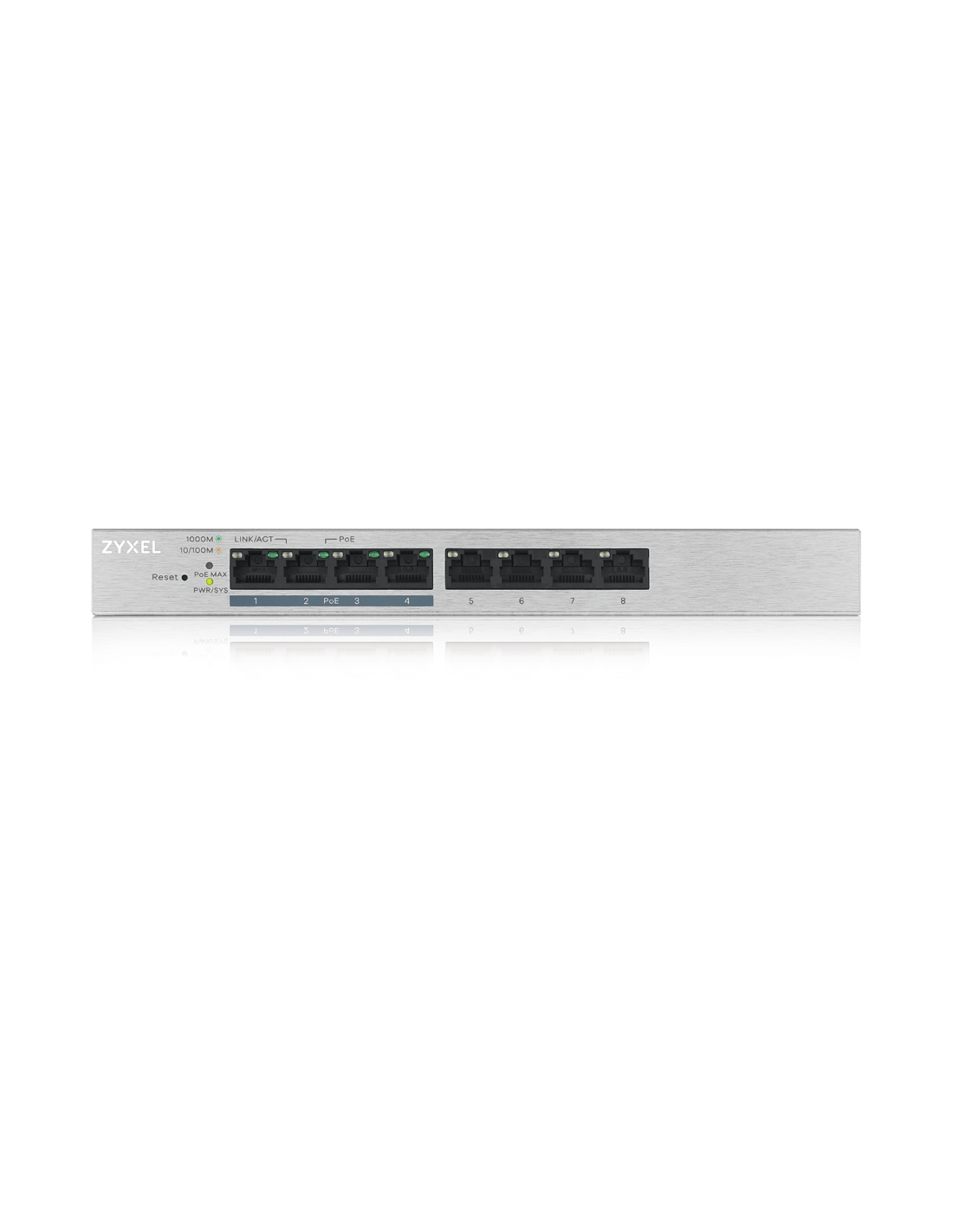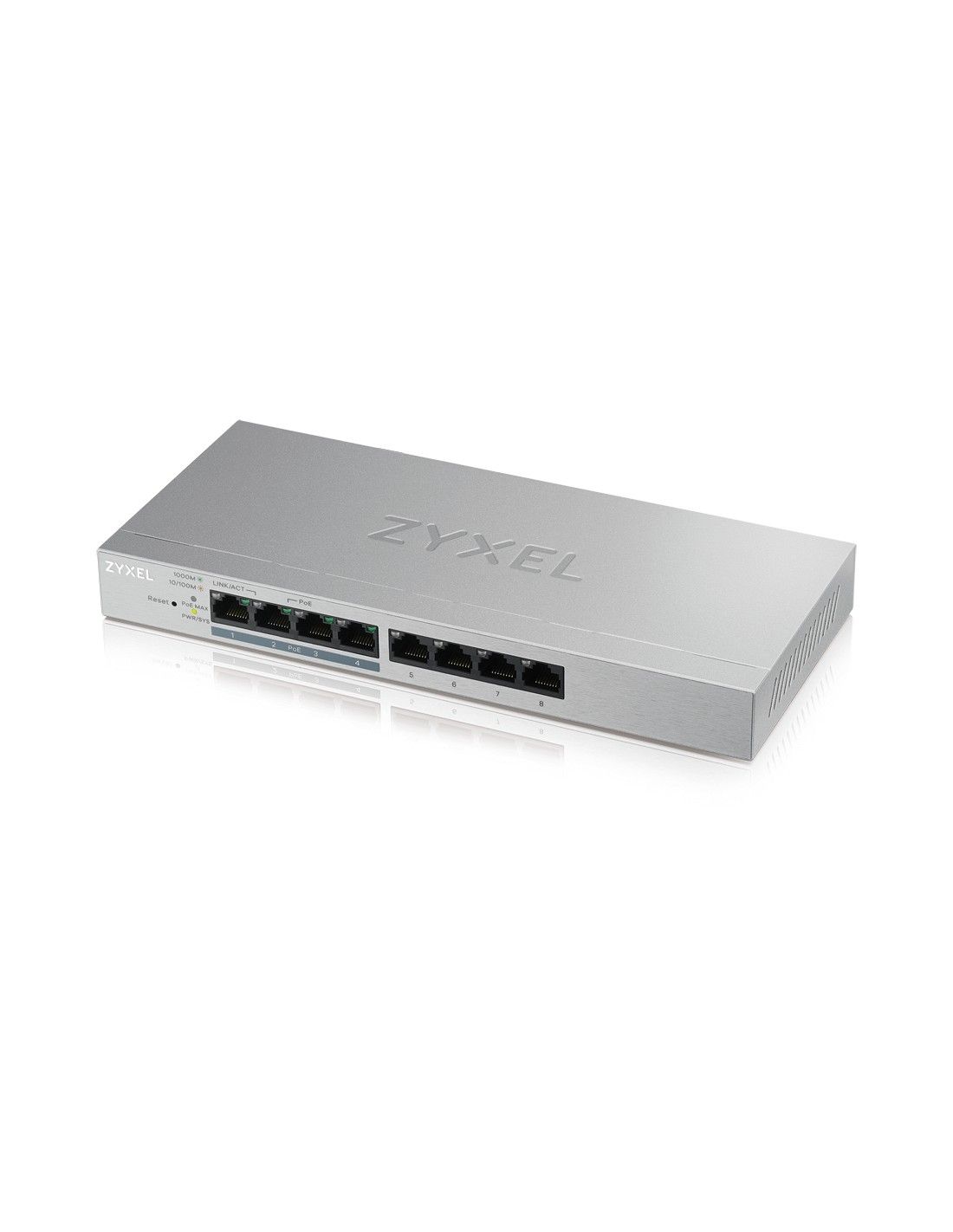 Zyxel GS1200-8HP v2. Tipo interruttore: Gestito. Tipo di porte RJ-45: Gigabit Ethernet (10/100/1000), Quantità di porte RJ-45: 8. Full duplex. Dimensioni tavola MAC: 4000 voci, Capacità di commutazione: 16 Gbit/s. Standard di rete: IEEE 802.1Q,IEEE 802.1p,IEEE 802.3x. Voltaggio input DC: 55 V. Connettore di alimentazione: Jack DC-ingresso. Supporto Power over Ethernet (PoE)