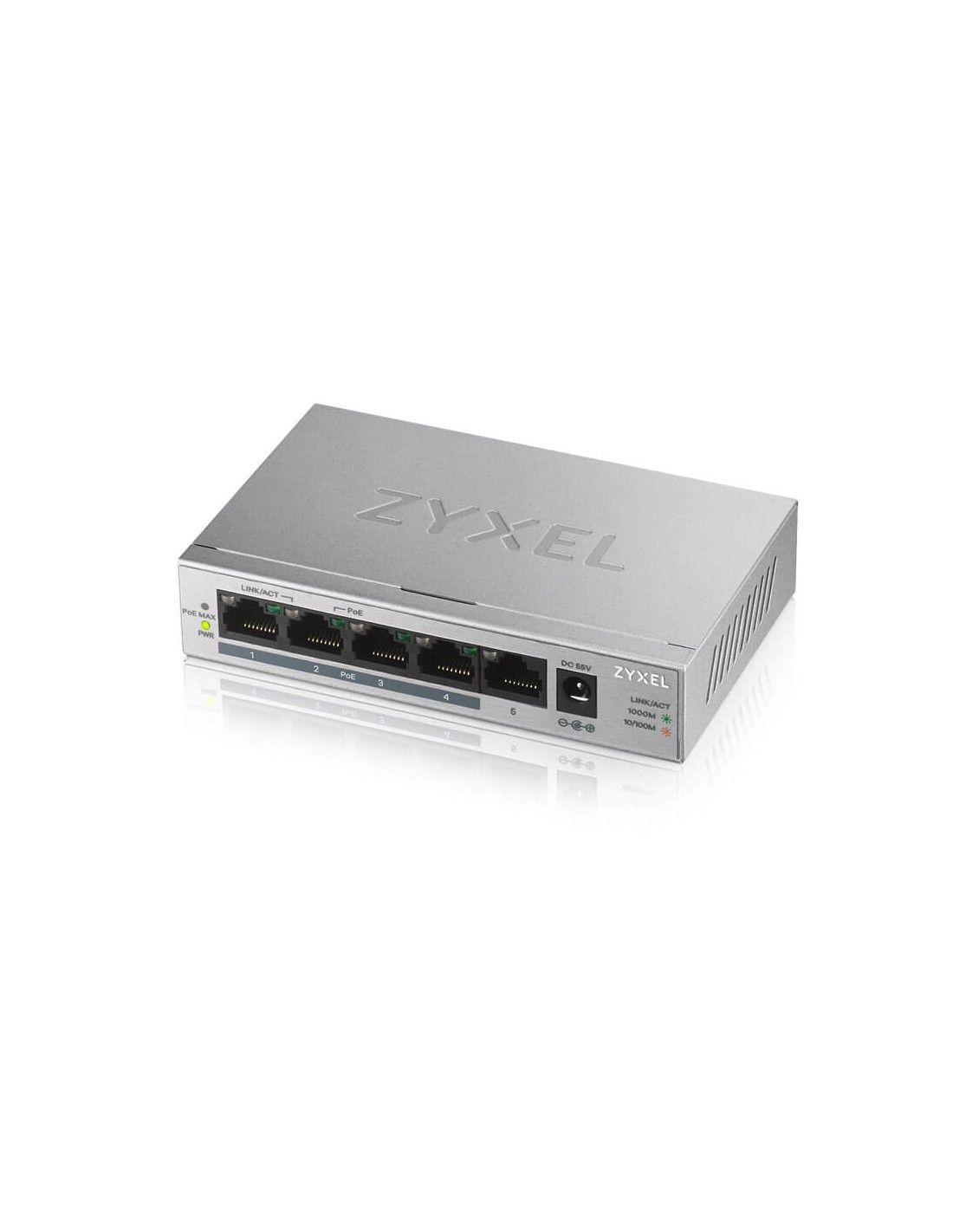 Zyxel GS1005HP. Tipo interruttore: Non gestito. Tipo di porte RJ-45: Gigabit Ethernet (10/100/1000), Quantità di porte RJ-45: 5. Full duplex. Dimensioni tavola MAC: 2048 voci, Capacità di commutazione: 10 Gbit/s. Standard di rete: IEEE 802.3,IEEE 802.3ab,IEEE 802.3az,IEEE 802.3u,IEEE 802.3x. Supporto Power over Ethernet (PoE)