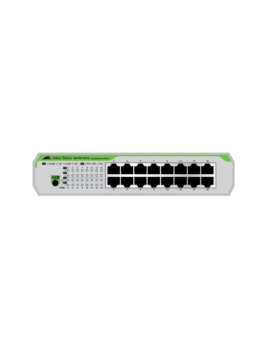 Allied Telesis AT-FS710/16-50. Tipo interruttore: Non gestito. Tipo di porte RJ-45: Fast Ethernet (10/100), Quantità di porte RJ-45: 16. Dimensioni tavola MAC: 8000 voci, Capacità di commutazione: 3,2 Gbit/s. Standard di rete: IEEE 802.3,IEEE 802.3az,IEEE 802.3u,IEEE 802.3x. Connettore di alimentazione: Jack DC-ingresso. Montaggio rack, Fattore di forma: 1U