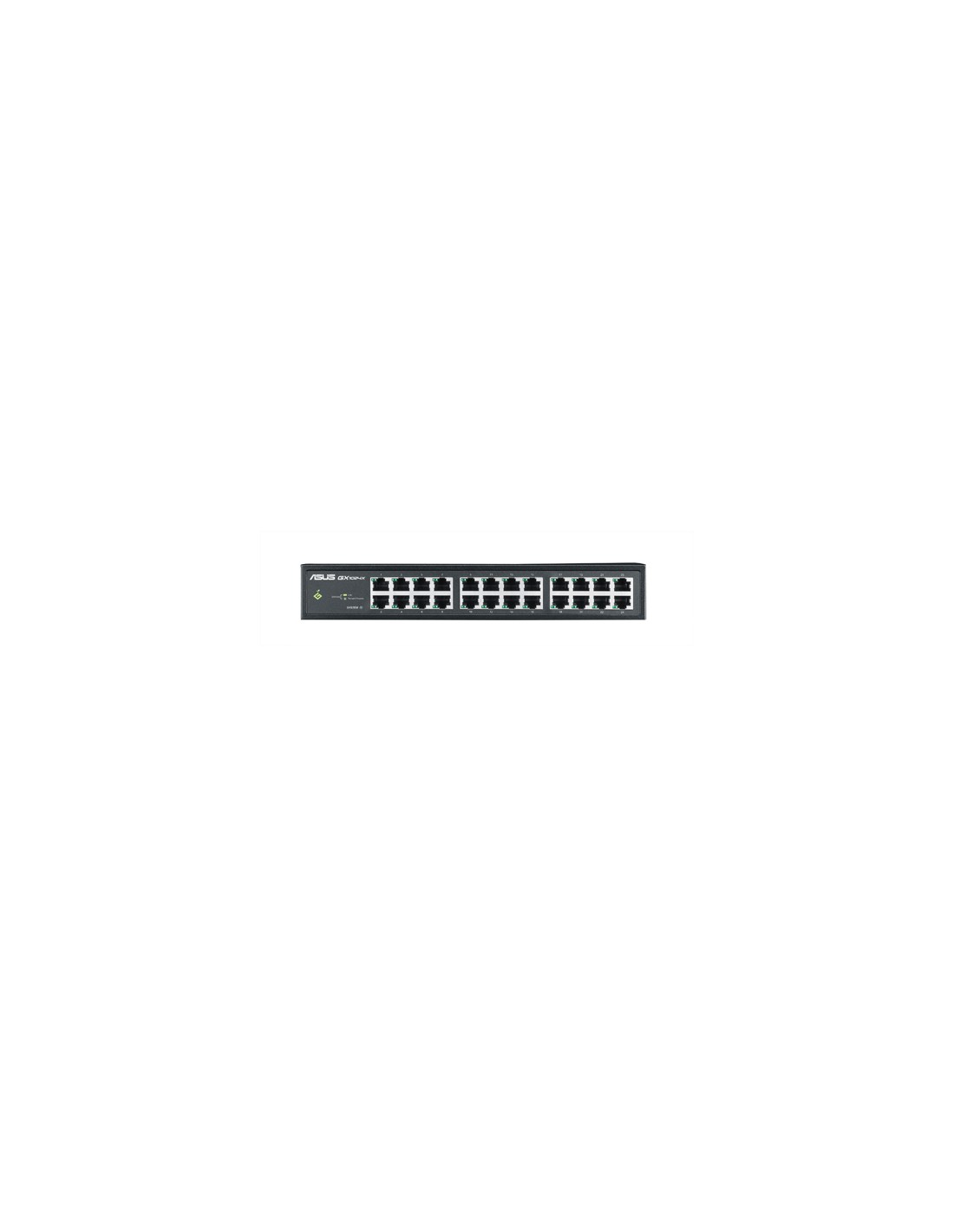 ASUS GX1024X V3. Quantità di porte RJ-45: 24. Full duplex. Dimensioni tavola MAC: 8000 voci, Capacità di commutazione: 4,8 Gbit/s. Standard di rete: IEEE 802.3,IEEE 802.3az,IEEE 802.3u,IEEE 802.3x. Connettore di alimentazione: Jack DC-ingresso. Montaggio rack