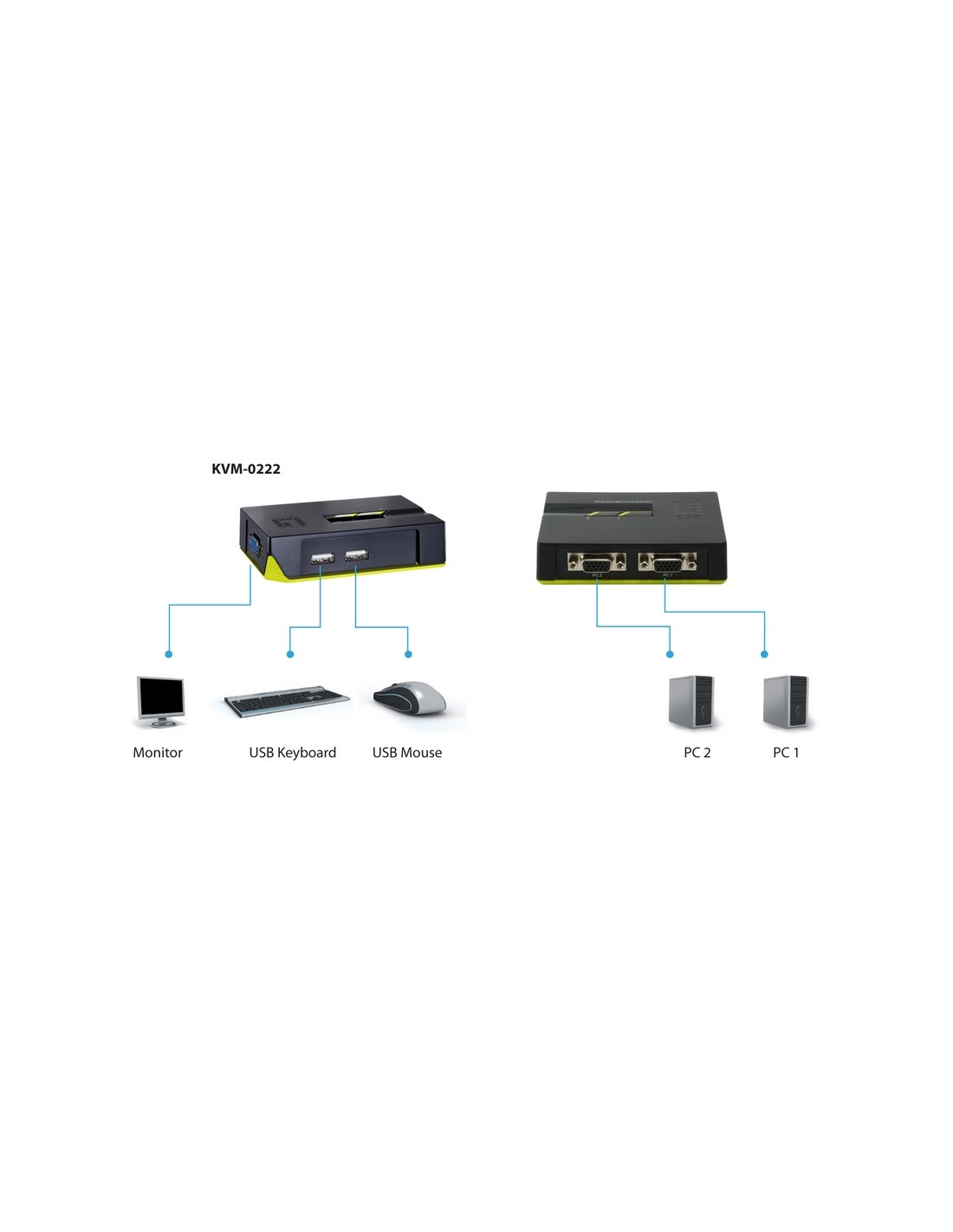 Controllo e gestione di due computers attraverso una tastiera, un mouse e un monitor.