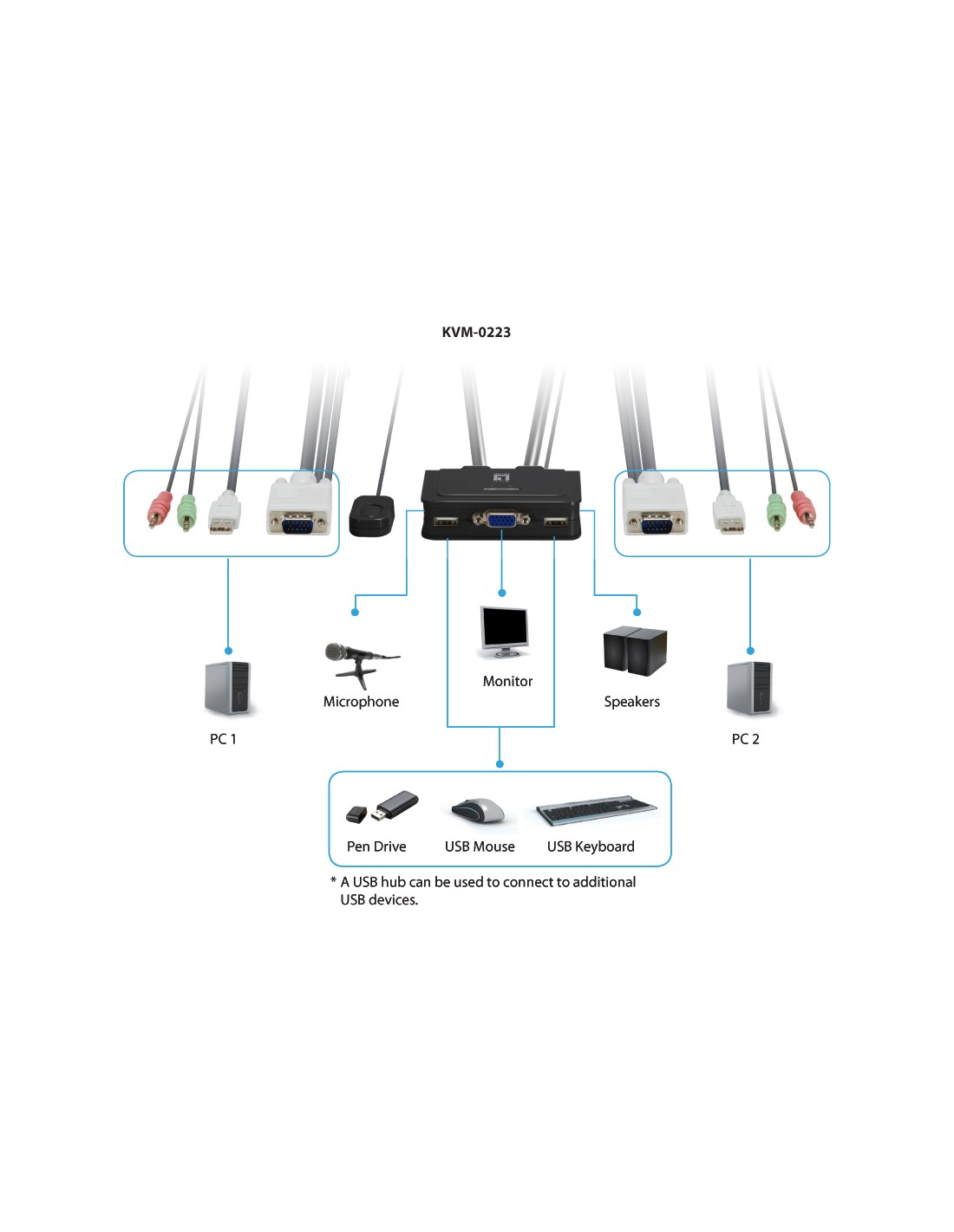 Controllo e gestione di 2 computer utilizzando una sola tastiera USB, mouse, monitor VGA e altoparlanti