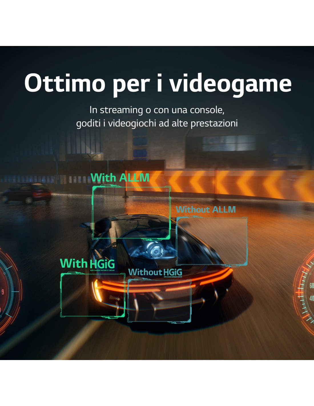 Game features | Modalità di bassa latenza automatica (ALLM), Game Dashboard, Game Optimizer |