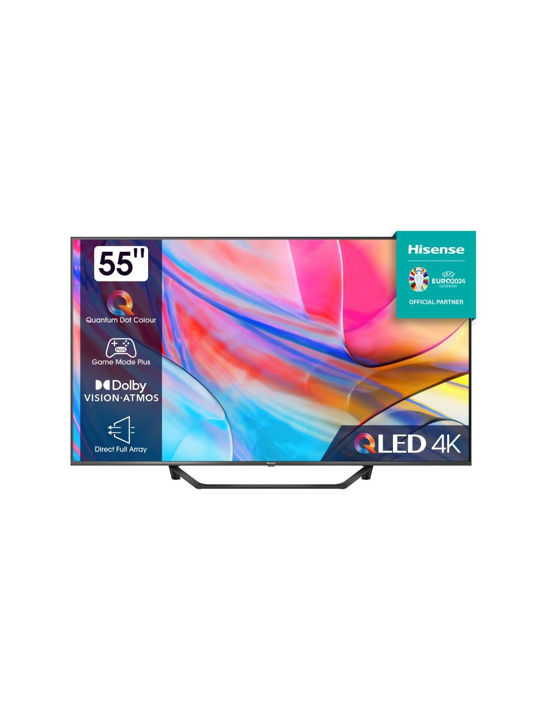 Hisense 55A79KQ. Dimensioni schermo: 139,7 cm (55"), Risoluzione del display: 3840 x 2160 Pixel, Tipologia HD: 4K Ultra HD, Tecnologia display: QLED, Forma dello schermo: Piatto, Tipo di retroilluminazione LED: Direct-LED. Smart TV. Tecnologia di interpolazione del movimento: Aquos Smooth Motion, Luminosità schermo: 330 cd/m², Tempo di risposta: 8 ms, Rapporto d'aspetto nativo: 16:9. Formato del segnale digitale: DVB, DVB-C, DVB-S, DVB-S2, DVB-T, DVB-T2. Wi-Fi, Collegamento ethernet LAN. Colore del prodotto: Nero