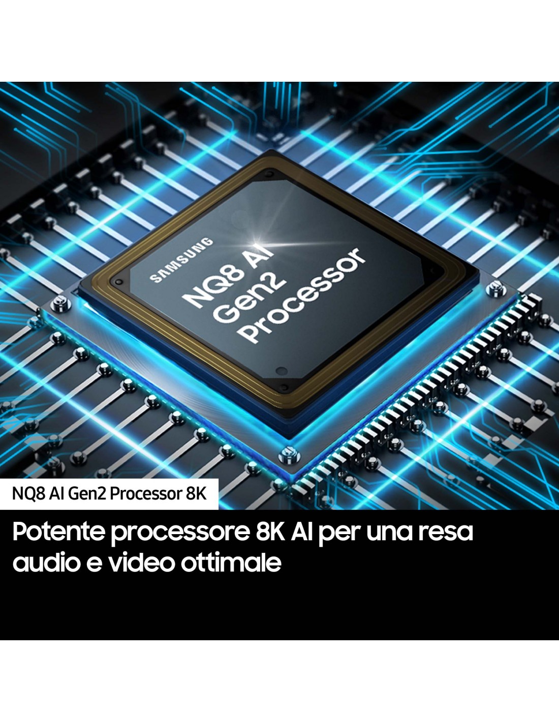 Il processore 8K basato sullAI di Samsung offre un'esperienza di visione in 8K semplicemente spettacolare. Grazie al supporto di 256 reti neurali basate sullintelligenza artificiale, la nostra tecnologia Upscaling AI 8K riproduce i contenuti con una qualità delle immagini molto vicina al 8K. Il nostro processore NQ8 AI Gen2 ottimizza sia l'immagine che il suono per offrire un'esperienza in 8K adatta alla riproduzione di contenuti in streaming su piattaforme OTT, ma ideale anche per giocare ai tuoi videogiochi preferiti o guardare eventi sportivi in diretta.
