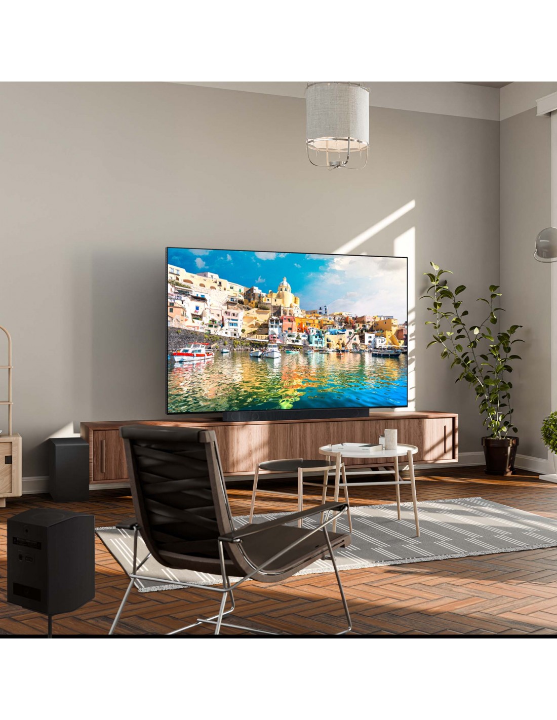Il TV e la soundbar si integrano tra loro per produrre un suono avvolgente e perfettamente armonico. Con la tecnologia Q-Symphony, gli altoparlanti del TV e della soundbar vengono utilizzati contemporaneamente senza disattivarli, per un perfetto audio surround.