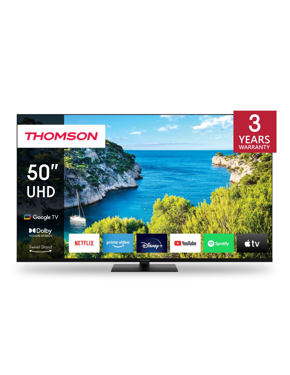 Thomson 43" 4K UHD Google TV filigranes Rahmendesign. Dimensioni diagonale schermo: 109,2 cm (43"), Risoluzione del display: 3840 x 2160 Pixel, Tipologia HD: 4K Ultra HD, Tecnologia display: LCD, Forma dello schermo: Piatto, Tipo di retroilluminazione LED: Direct-LED. Smart TV. Rapporto d'aspetto nativo: 16:9. Formato del segnale digitale: DVB-C, DVB-S, DVB-S2, DVB-T, DVB-T2. Wi-Fi, Collegamento ethernet LAN. Colore del prodotto: Nero