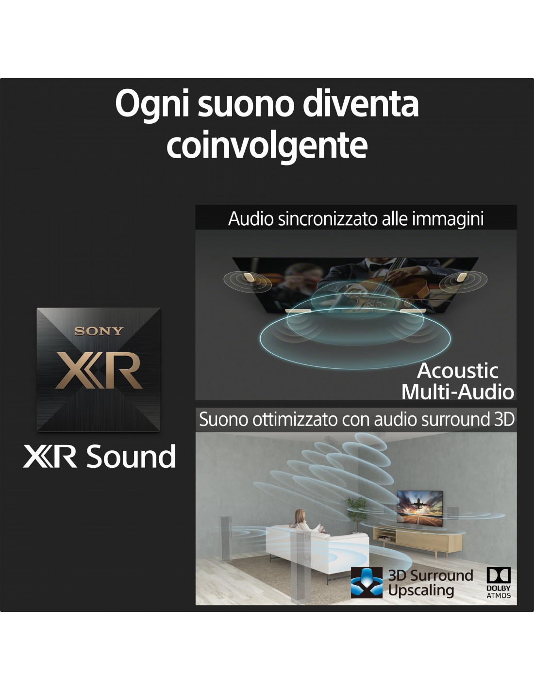 For full sensory immersion, the sound precisely matches the action on-screen. Our Acoustic Multi-Audio™ technology uses sound positioning tweeters to ensure each sound comes from exactly the right place in the scene.