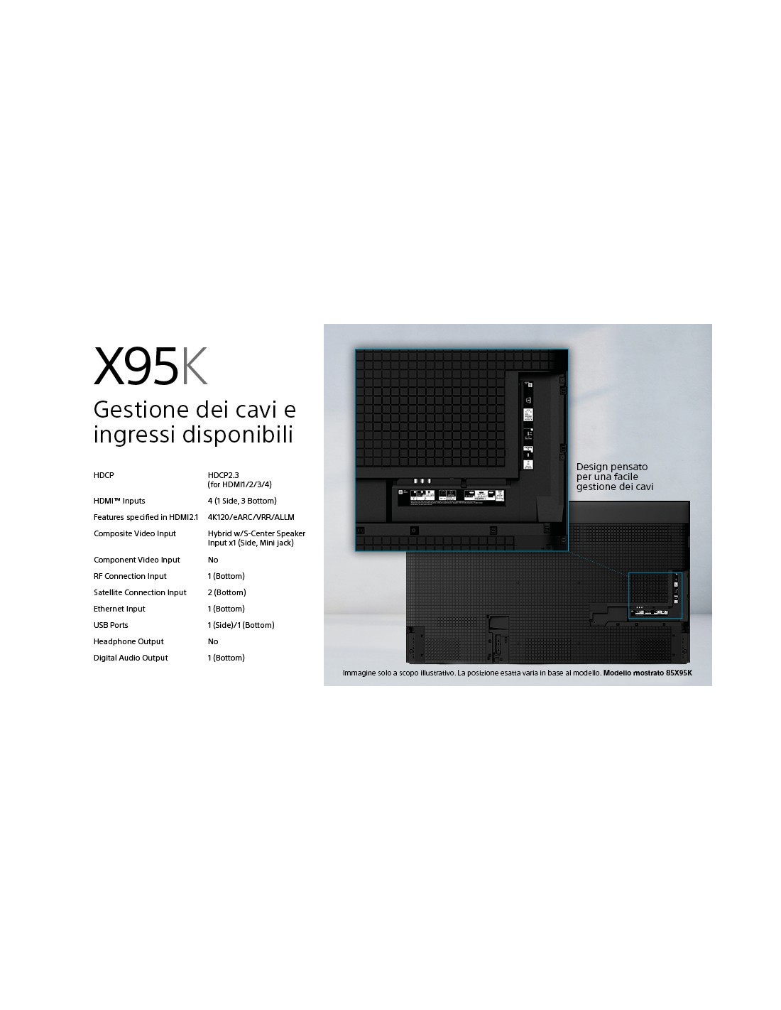 XR-65X95K – 65”- BRAVIA XR™ - Mini LED – 4K Ultra HD – High Dynamic Range – Smart TV – Black, 165,1 cm, 3840 x 2160 Pixel, LCD, Smart TV, Wi-Fi, Nero, Argento