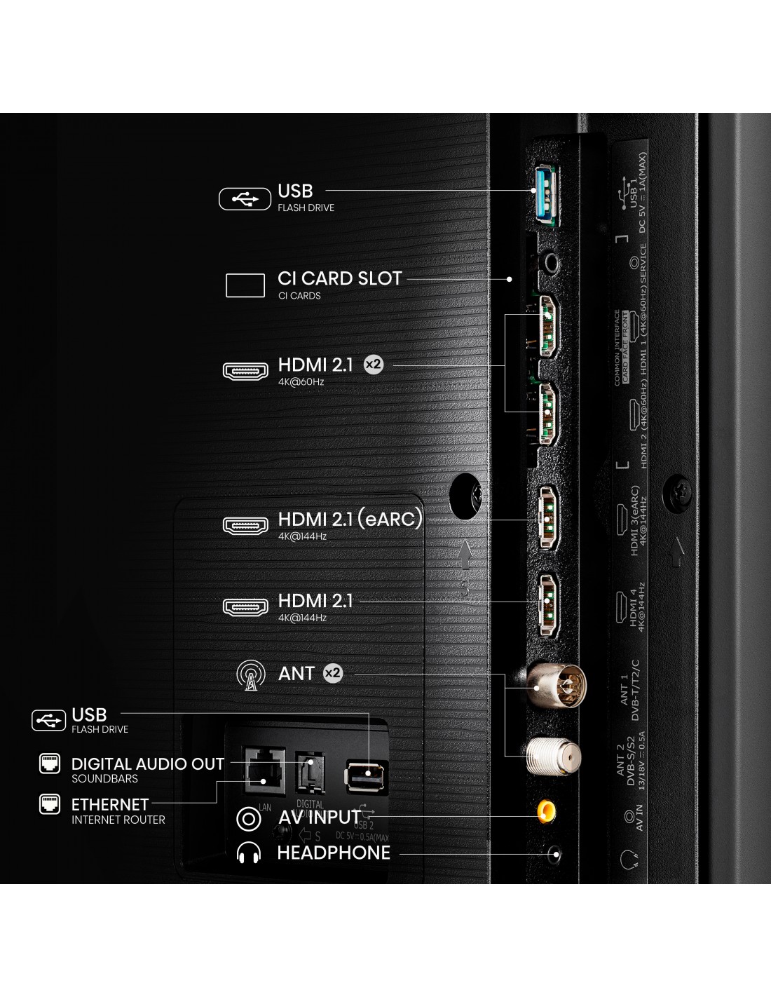Hisense Smart TV QLED 85" 4K 85E7NQ PRO. Dimensioni diagonale schermo: 2,16 m (85"), Risoluzione del display: 3840 x 2160 Pixel, Tipologia HD: 4K Ultra HD, Tecnologia display: QLED, Forma dello schermo: Piatto, Tipo di retroilluminazione LED: Direct-LED. Smart TV. Luminosità schermo: 400 cd/m², Rapporto di contrasto: 6000:1, Rapporto d'aspetto nativo: 16:9. Formato del segnale digitale: DVB-C, DVB-S, DVB-S2, DVB-T, DVB-T2. Wi-Fi. Colore del prodotto: Nero