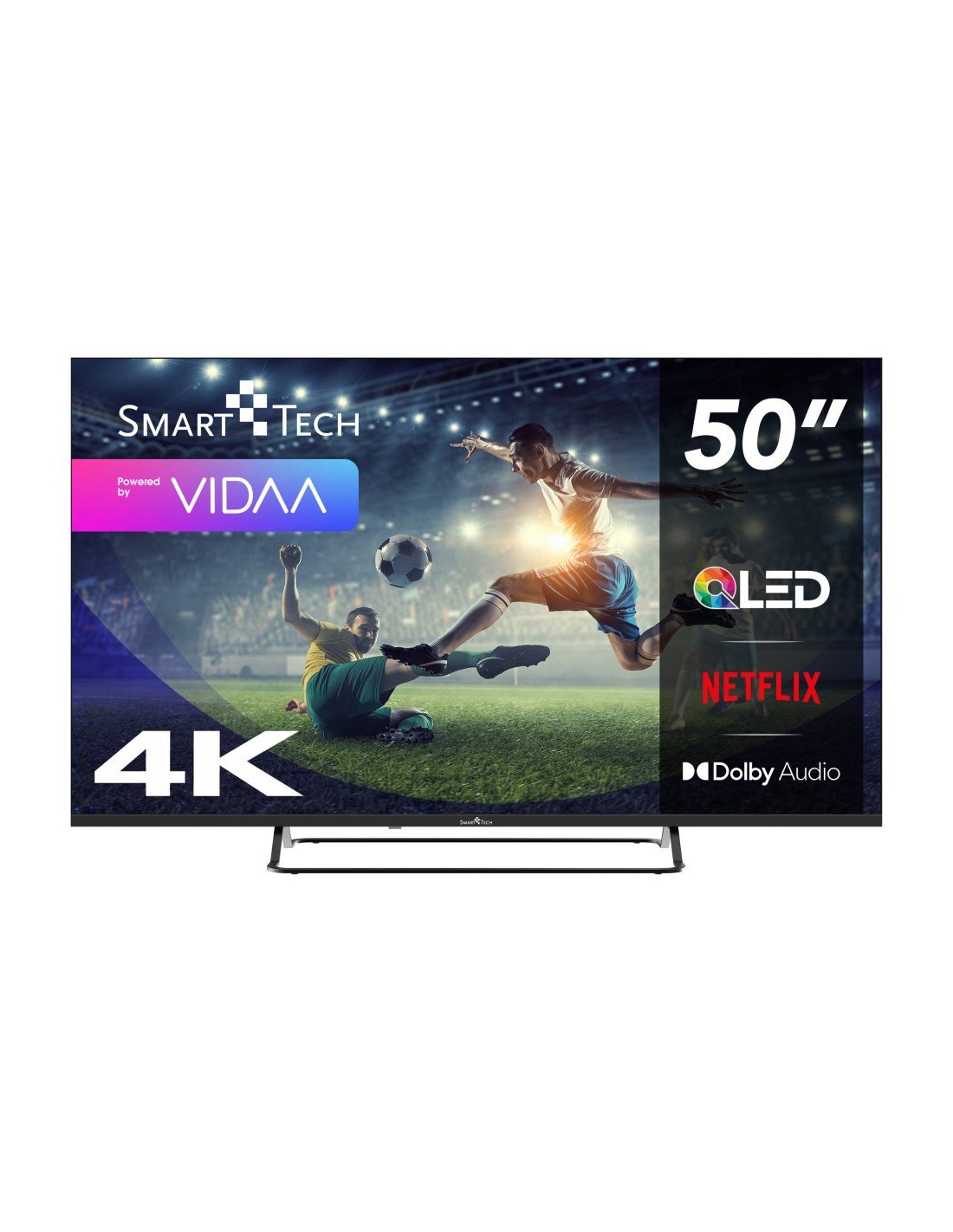 Smart-Tech 50QG04G. Dimensioni diagonale schermo: 127 cm (50"), Risoluzione del display: 3840 x 2160 Pixel, Tipologia HD: 4K Ultra HD, Tecnologia display: QLED, Forma dello schermo: Piatto. Smart TV. Luminosità schermo: 300 cd/m², Tempo di risposta: 6,5 ms, Rapporto di contrasto: 4000:1, Rapporto d'aspetto nativo: 16:9. Formato del segnale digitale: DVB-C, DVB-S, DVB-S2, DVB-T, DVB-T2. Wi-Fi, Collegamento ethernet LAN. Colore del prodotto: Grigio