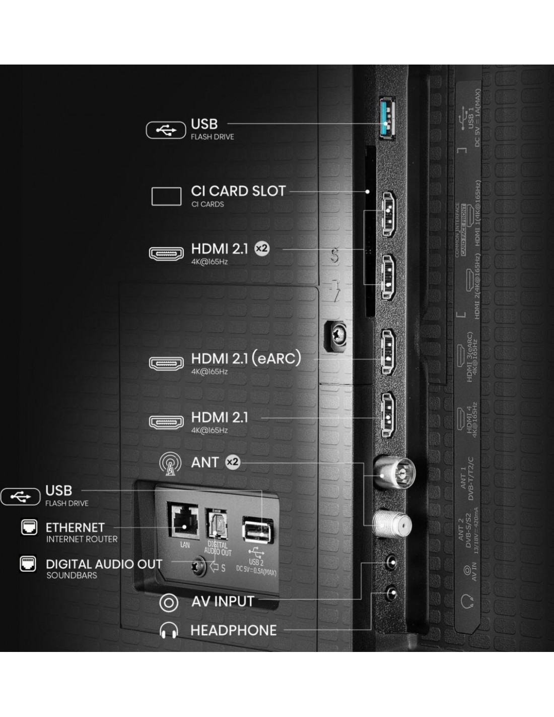 Hisense 100U7Q. Dimensioni diagonale schermo: 2,54 m (100"), Risoluzione del display: 3840 x 2160 Pixel, Tipologia HD: 4K Ultra HD, Tecnologia display: ULED, Forma dello schermo: Piatto, Tipo di retroilluminazione LED: Mini LED. Smart TV. Tempo di risposta: 6,5 ms, Rapporto di contrasto: 5000:1, Rapporto d'aspetto nativo: 16:9. Formato del segnale digitale: DVB-C, DVB-S, DVB-S2, DVB-T, DVB-T2. Wi-Fi, Collegamento ethernet LAN. Colore del prodotto: Nero