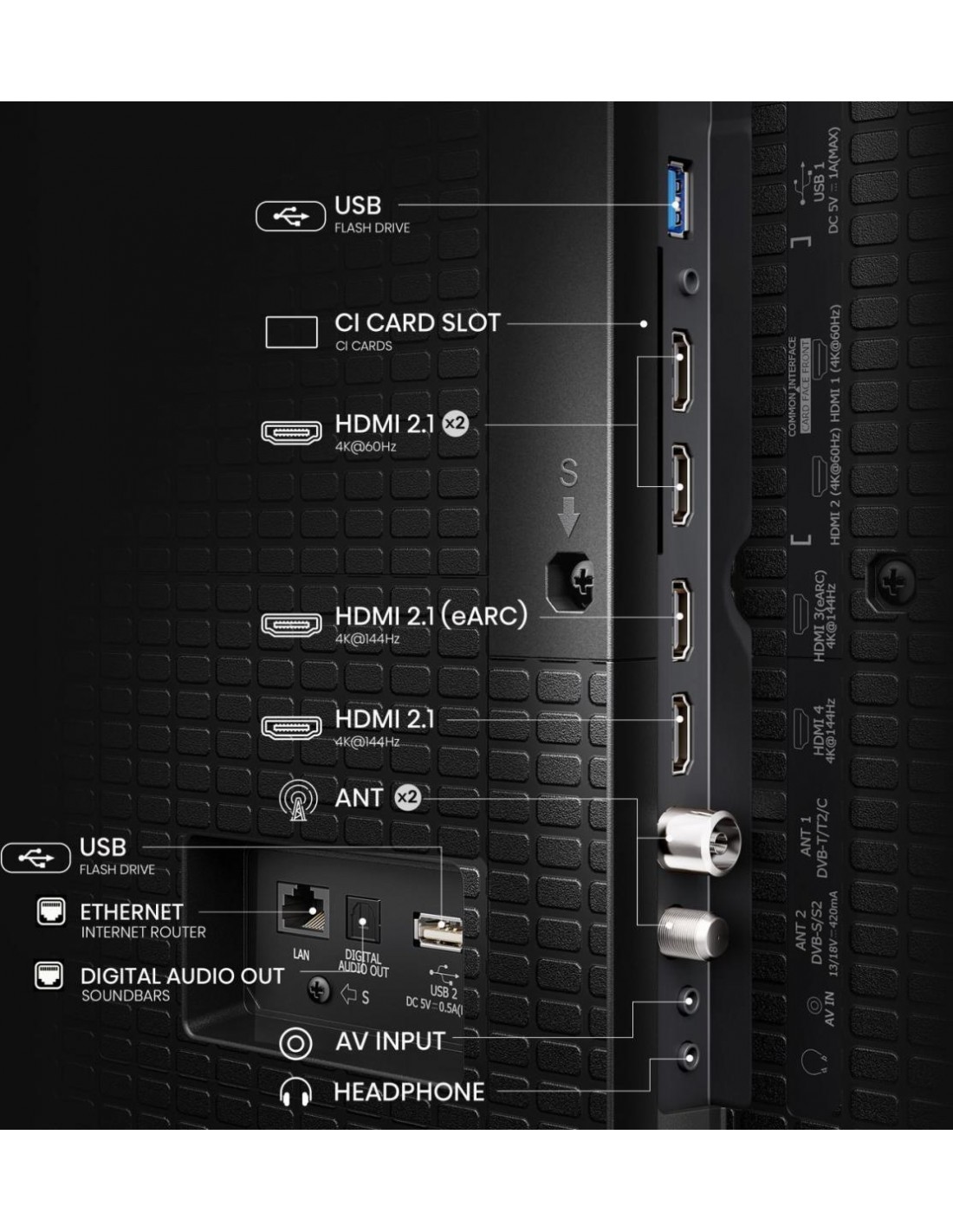| Tecnologie Hisense (AV/TV) | 4K AI Upscaler, 144Hz Game Mode Pro, Game Mode, MEMC (Motion Estimation Motion Compensation), Quantum Dot Colour |