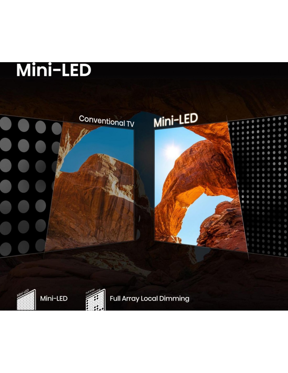 La tecnologia Mini-LED eleva la tua esperienza visiva, dando vita a una luminosità vibrante e rivelando ombre profonde e ricche con una nitidezza sorprendente.