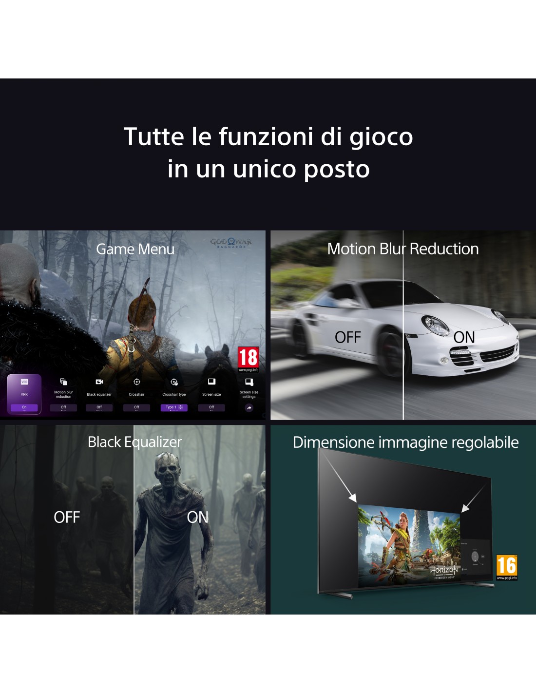 I giocatori potranno godere di un'esperienza di gioco fluida e reattiva, con 4K/120 fps, VRR e ALLM in HDMI 2.1(11), il nostro menu di gioco ad accesso rapido Game Menu 2, le funzionalità Perfect for PS5®(12) e PS Remote Play(13).