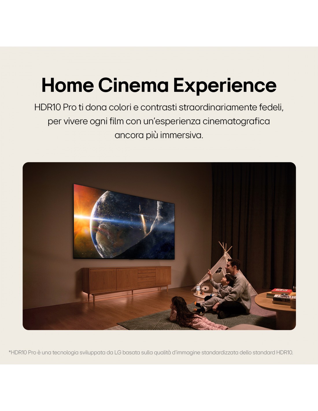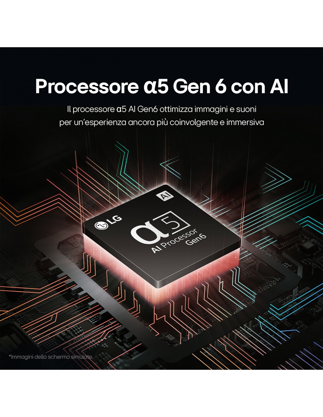| Tecnologie LG (AV/TV) | AI Acoustic Tuning, AI Sound, Bluetooth Surround Ready, LG Sound Sync, ThinQ™, a5 AI Processor Gen6 |