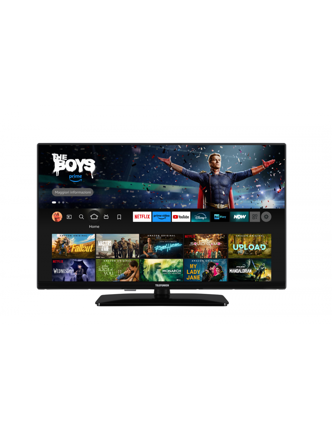 Telefunken TE32759B50V4D. Dimensioni diagonale schermo: 81,3 cm (32"), Risoluzione del display: 1366 x 768 Pixel, Tipologia HD: HD, Tecnologia display: DLED, Forma dello schermo: Piatto, Luminosità schermo: 250 cd/m², Tempo di risposta: 8 ms, Rapporto di contrasto: 1200:1. Formato del segnale digitale: DVB-C, DVB-S2, DVB-T2. Wi-Fi. Colore del prodotto: Nero