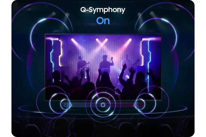 Suoni avvolgenti e armonie celestiali. La tecnologia Samsung sincronizza l'audio del TV e della soundbar per riprodurlo simultaneamente, senza disattivare gli altoparlanti di uno dei due dispositivi.