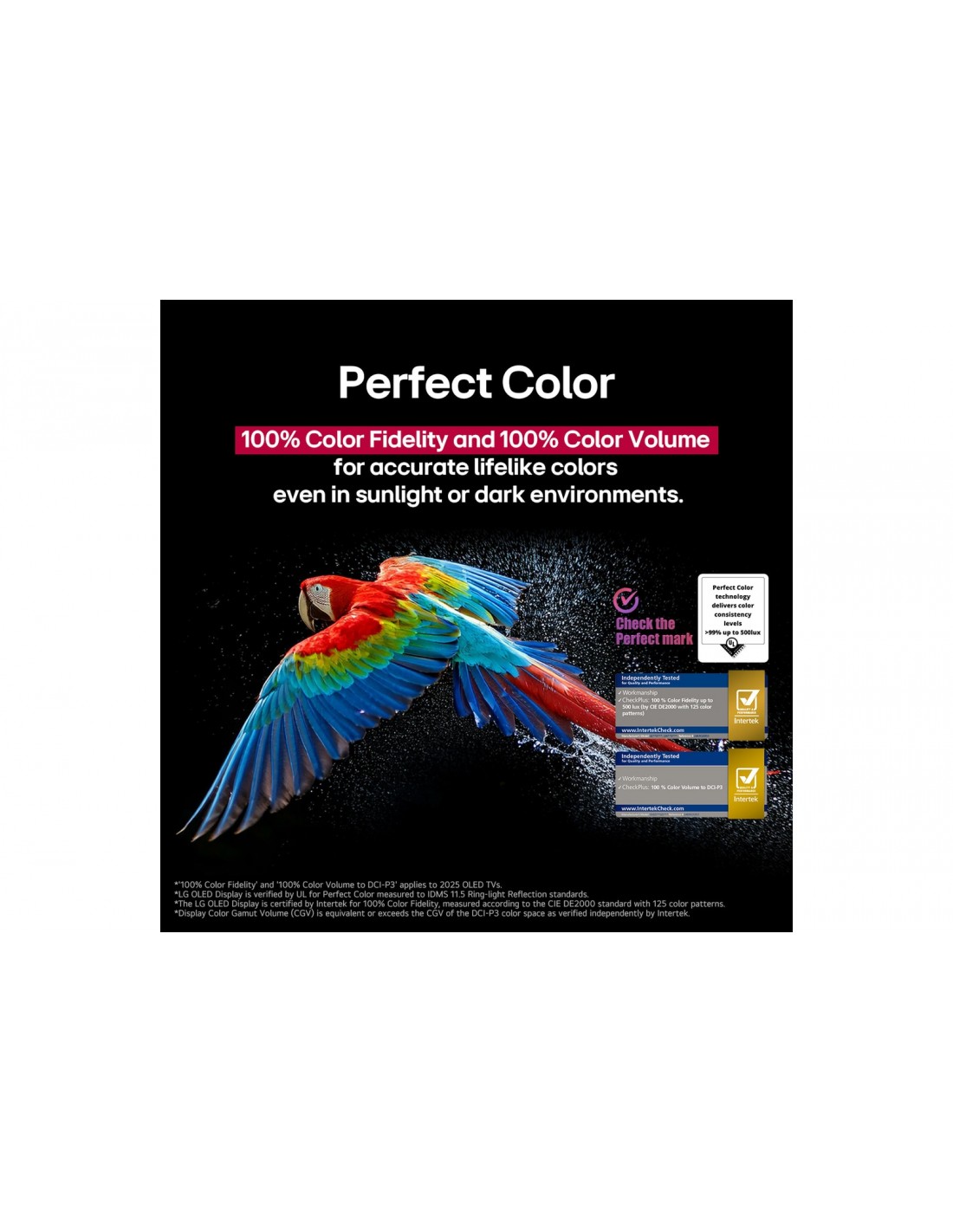 Vivi la massima qualità visiva con Nero perfetto e Colore perfetto, verificati da UL nella prima TV al mondo ad avere ottenuto la certificazione True Visual Experience con illuminazione per interni di TÜV Rheinland.